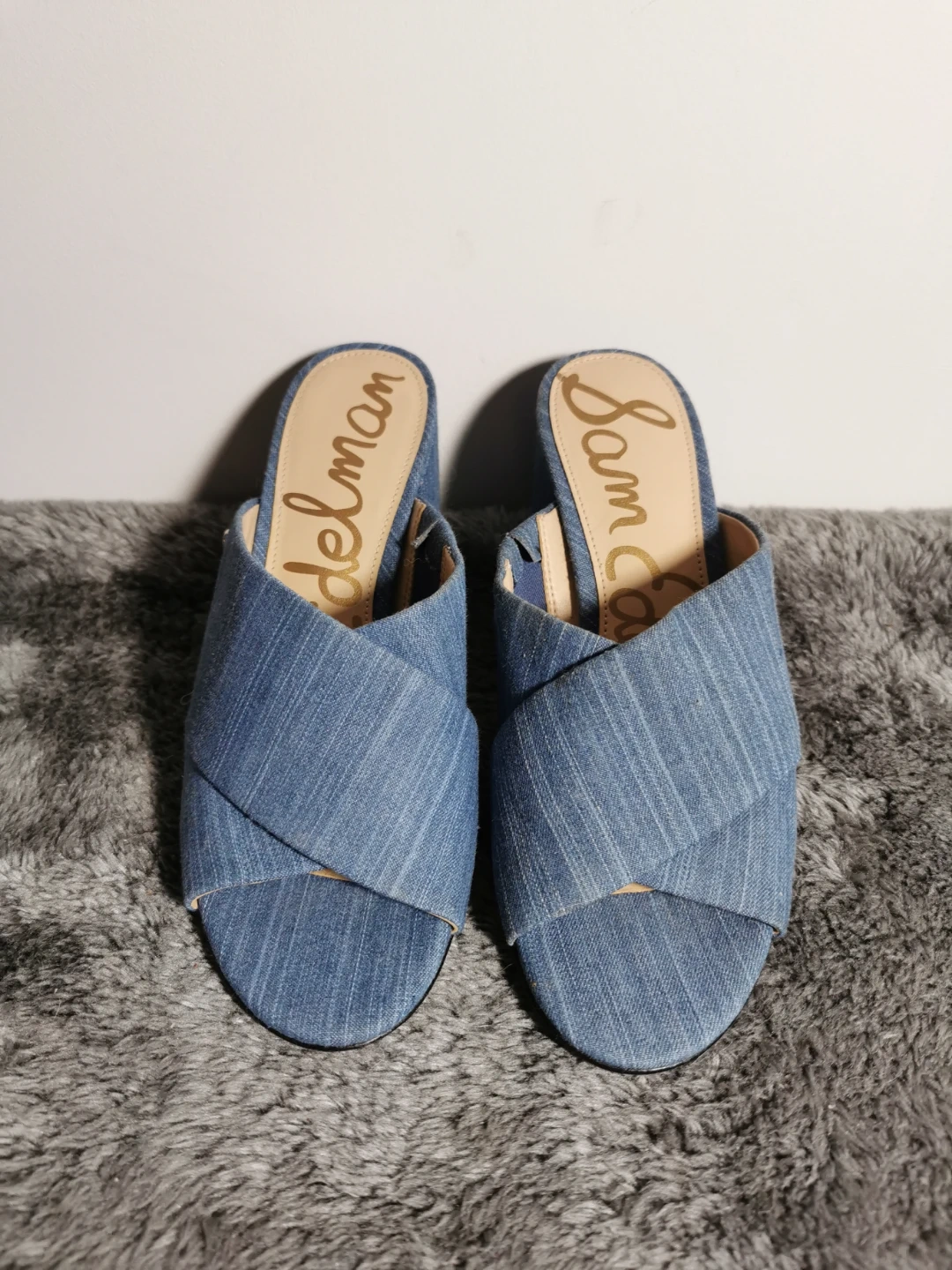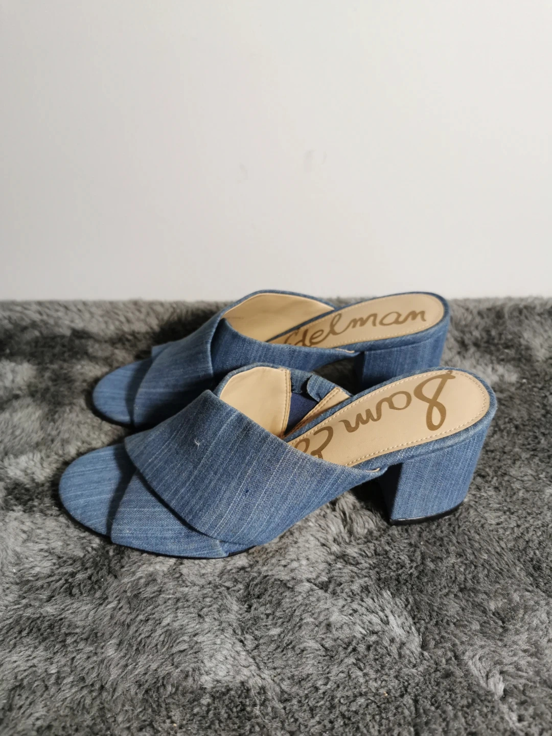 Cute Sam Edelman denim mules in a size 6! They feature a stylish cross-strap design, perfect for adding a touch of casual chic to any outfit. These are in good condition and ready for a new home!