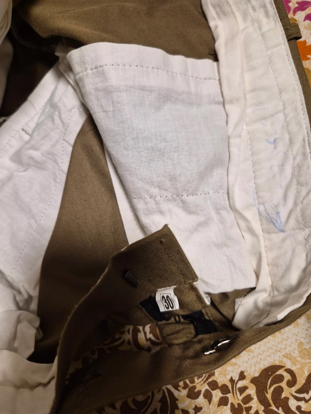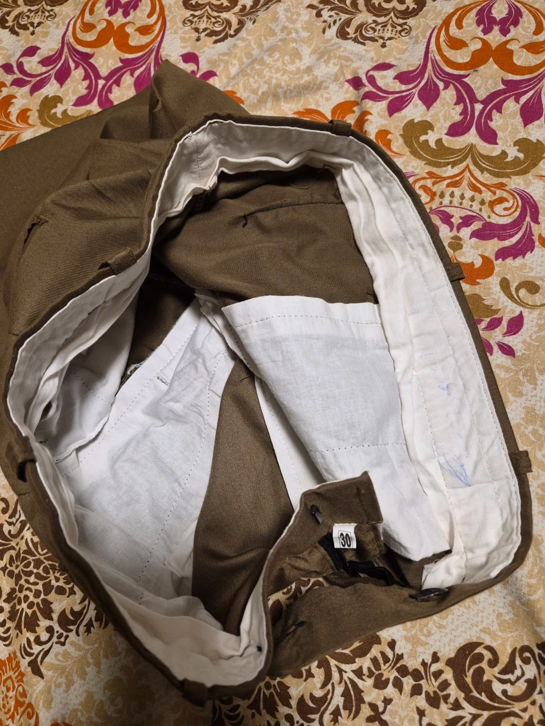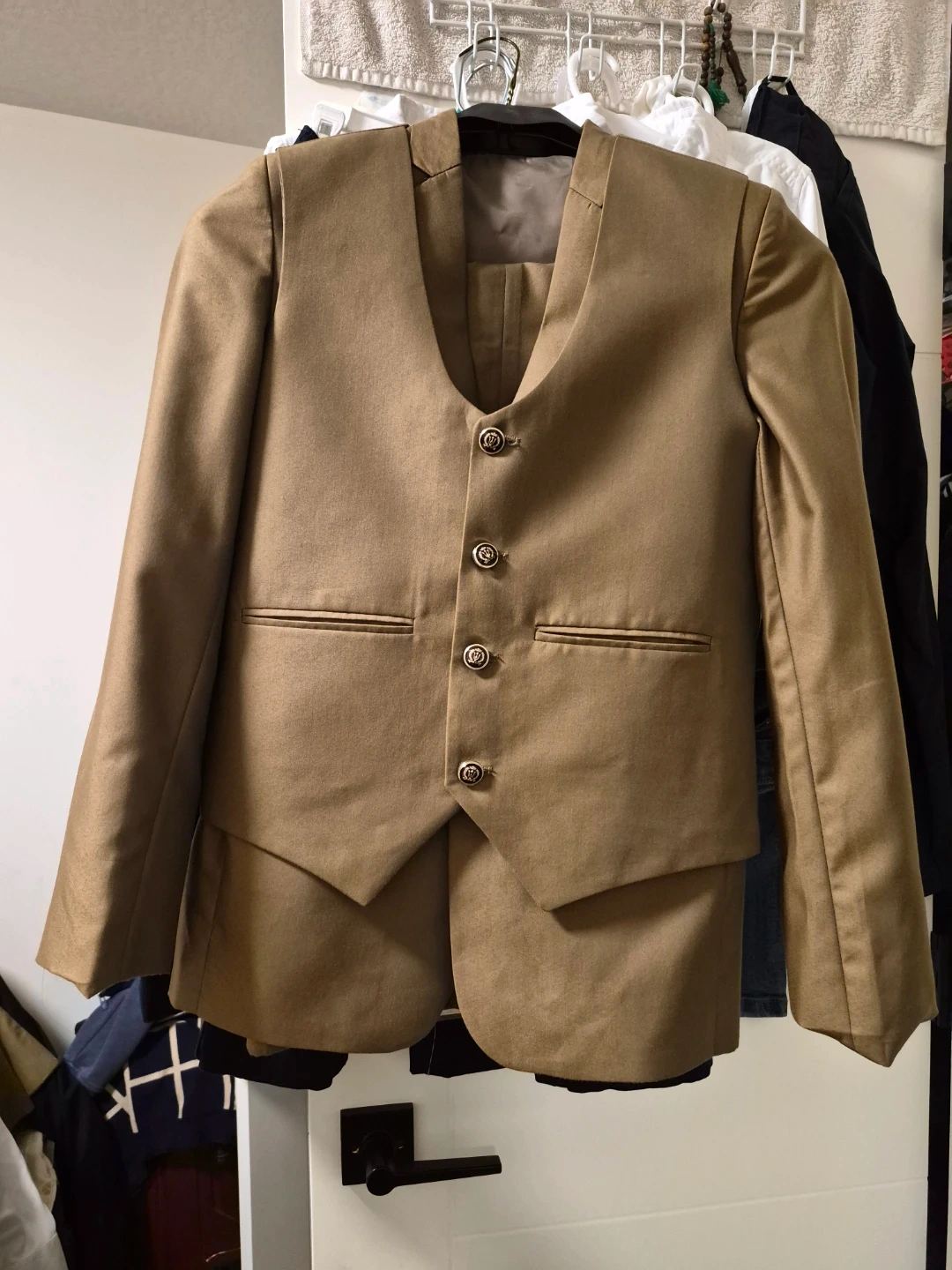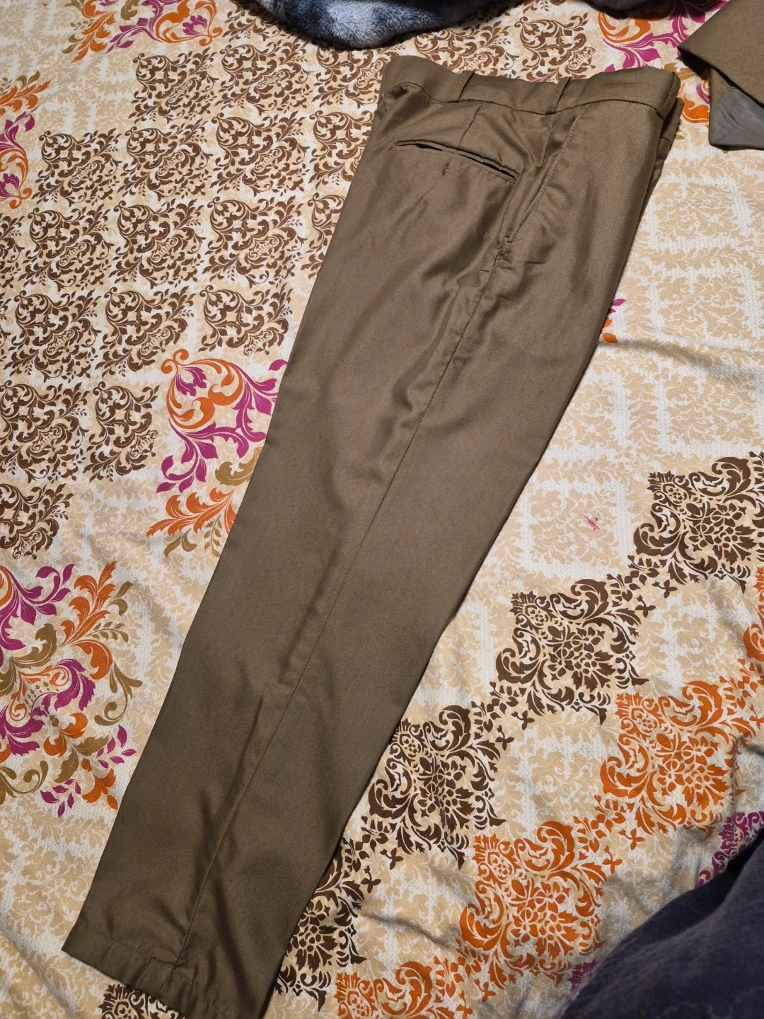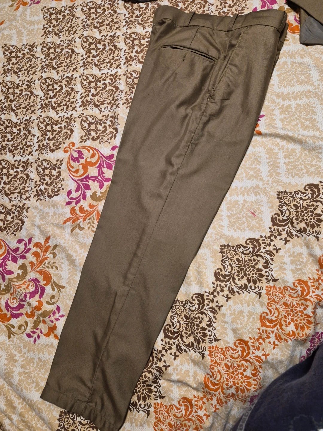 Selling a men's brown suit, which includes the jacket, pants, and vest. It's in great shape and ready for a new owner. Weared just once. Neat and clean suit in size 30.