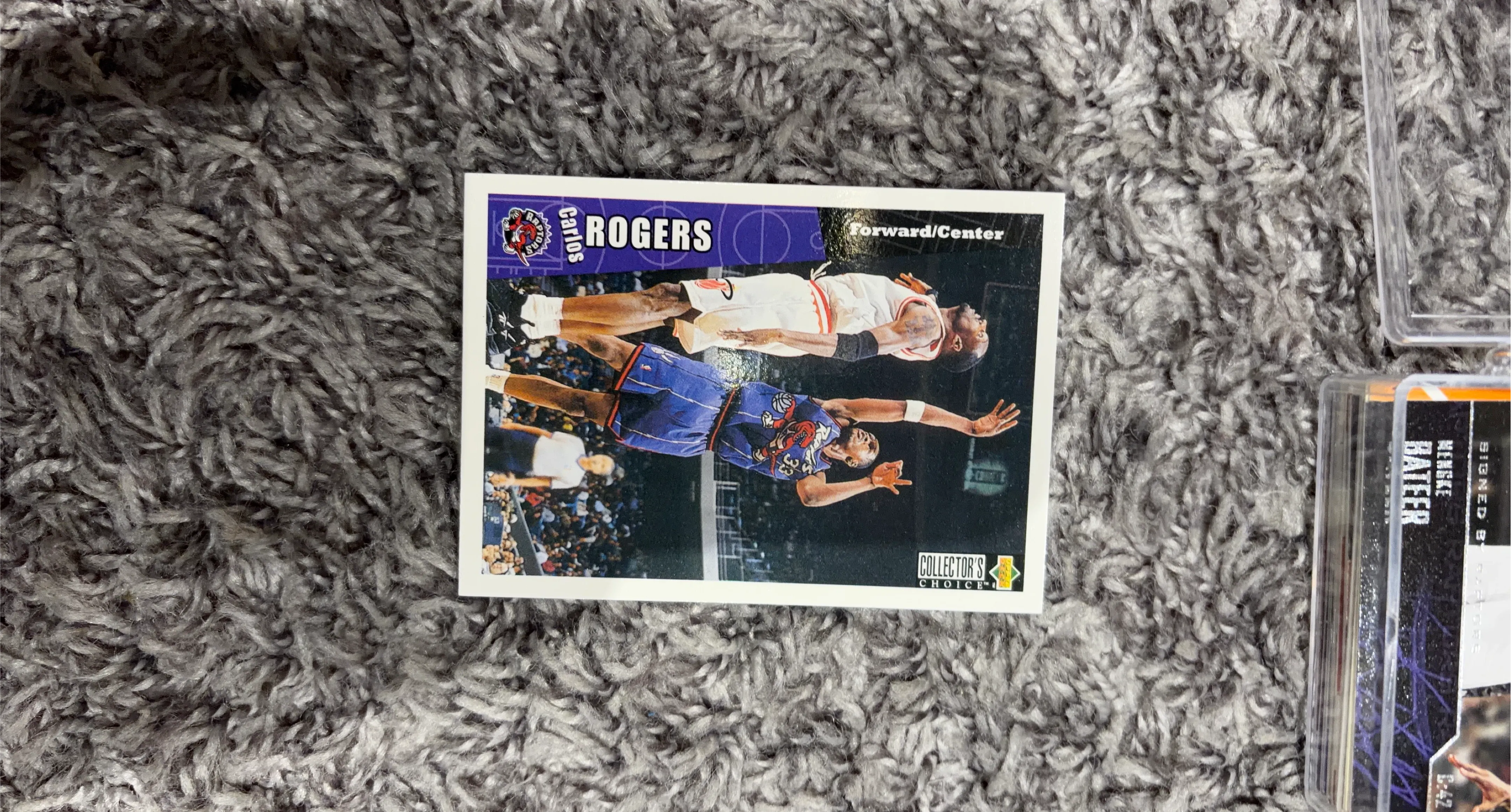 Selling a Carlos Rogers basketball card from the Toronto Raptors. It's a Collector's Choice card and features Rogers as a Forward/Center. It's in great shape for its age!