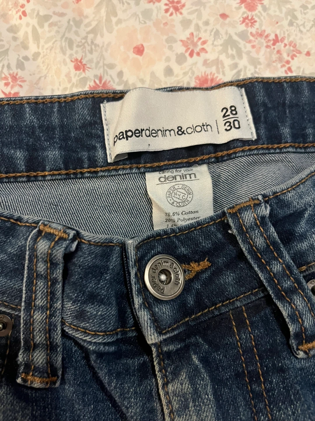 Selling a pair of Paper Denim & Cloth jeans in size 28/30. They're made of 73.6% cotton and 26.4% polyester. These jeans have a classic denim look and are ready for a new wardrobe!