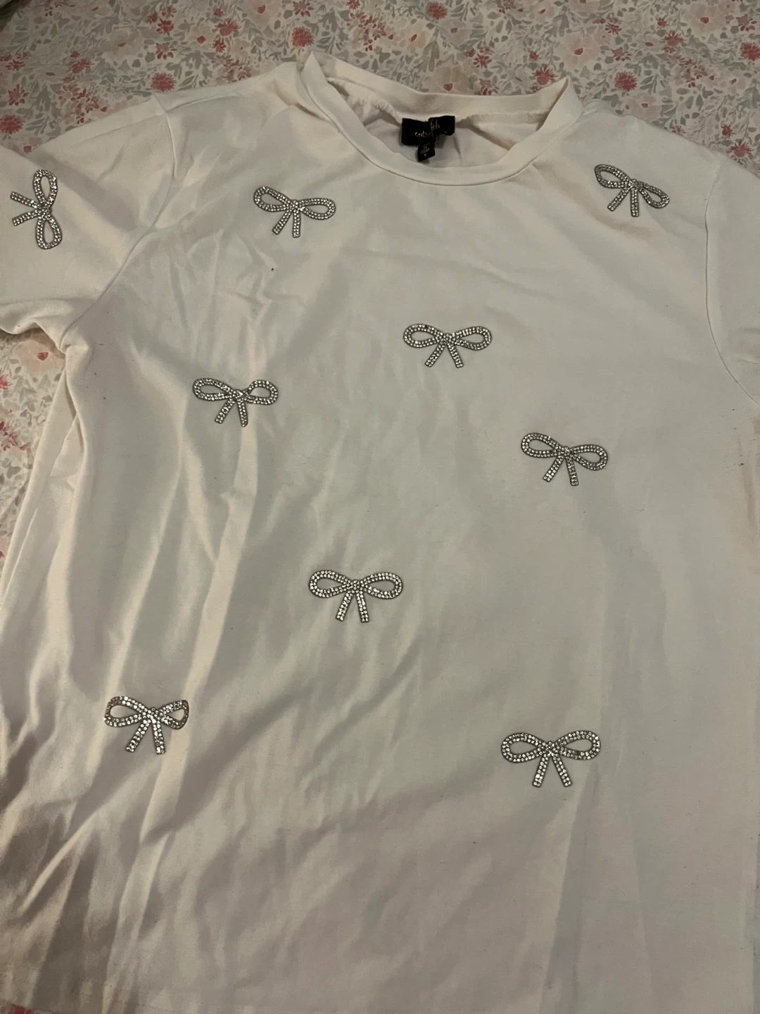 Cute white t-shirt from TFNC London! It has adorable bow details all over. It's a size S and in great condition. Perfect for adding a touch of sparkle to your casual outfits!