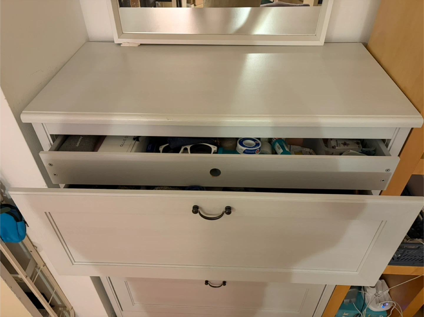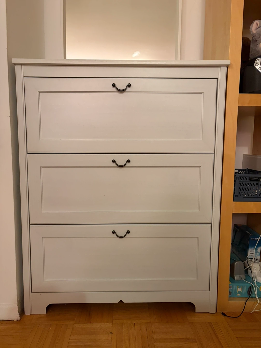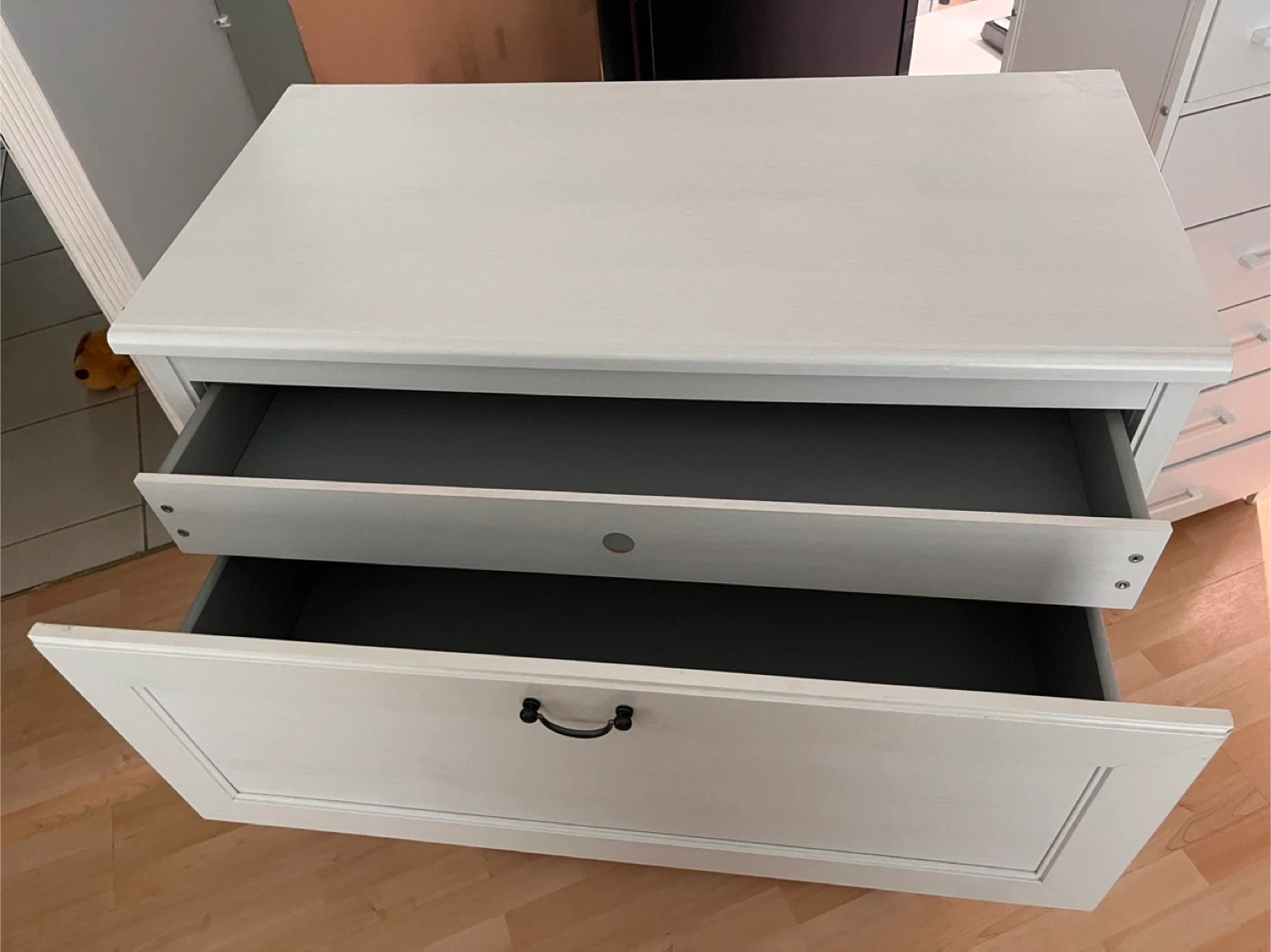 Selling a white IKEA ASPELUND chest of drawers with three drawers. It's in great shape and perfect for keeping your space organized. This cabinet provides ample storage while maintaining a sleek and tidy look! Nothing wrong with it, I just need more storage. Pickup only, I don’t have a vehicle or way to transport it - sorry.