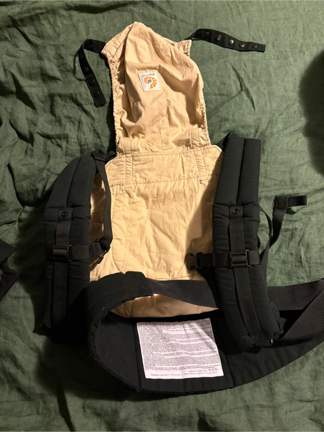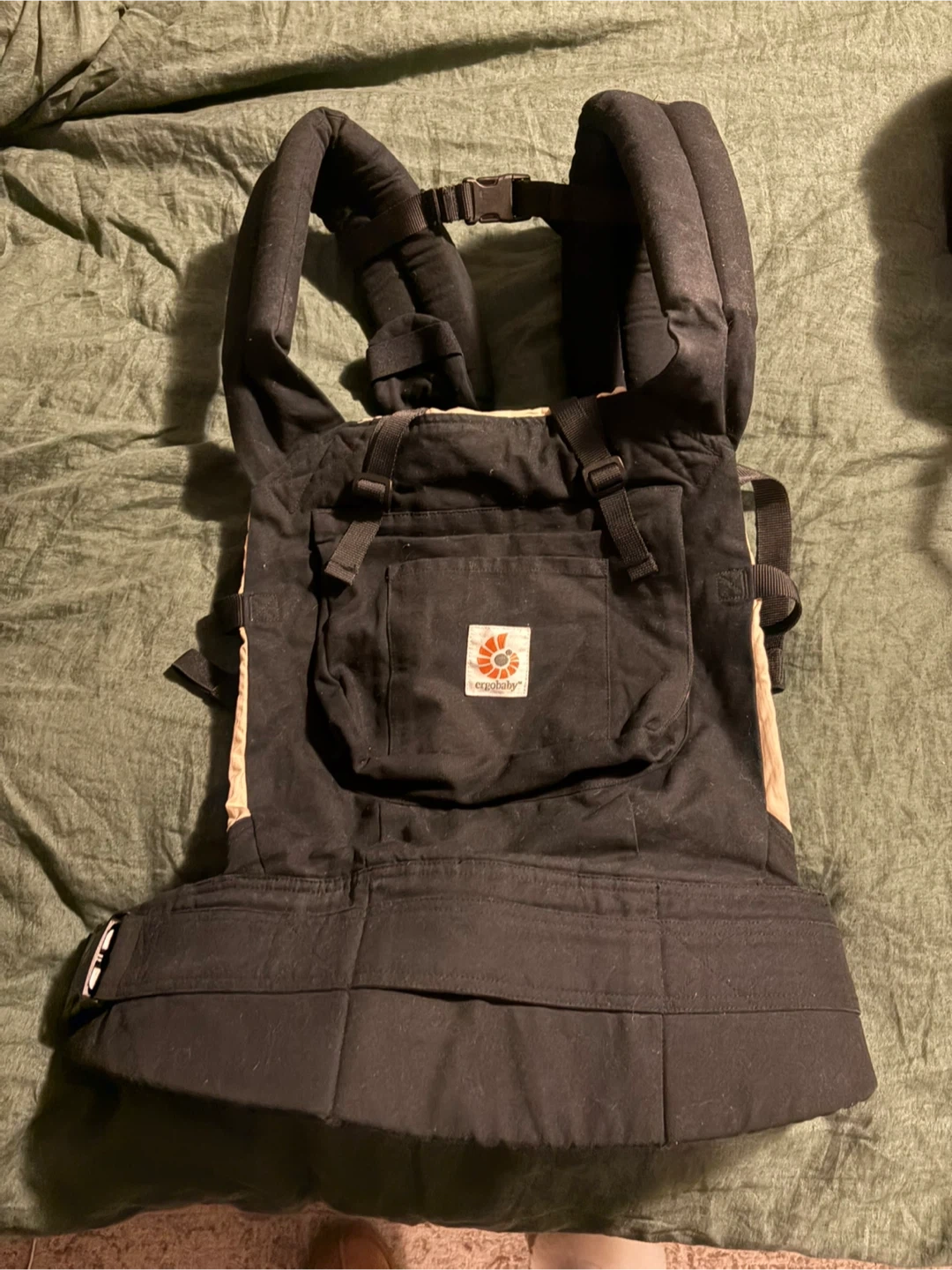 Selling an Ergobaby carrier in black and beige. It's in great condition (used twice) and ready for your little one! Perfect for keeping your baby close and comfortable while you're on the go.