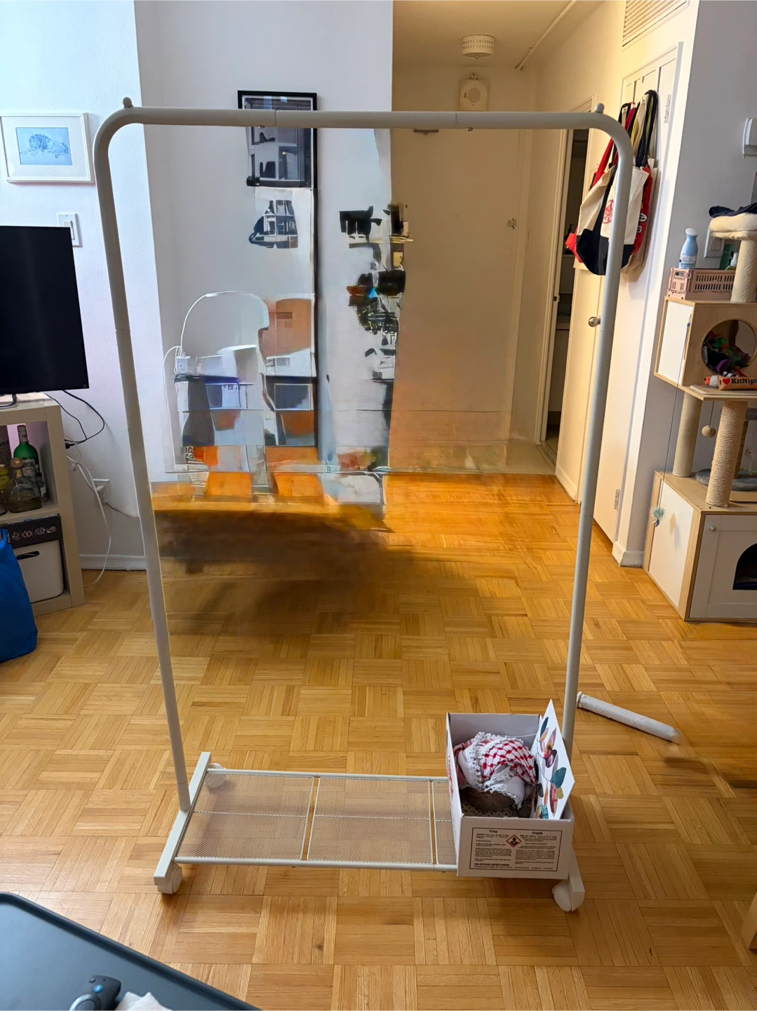 Selling a handy clothes rack. It's in great shape and perfect for adding extra storage and hanging space to a bedroom or closet. The clothes rack is sturdy and reliable.