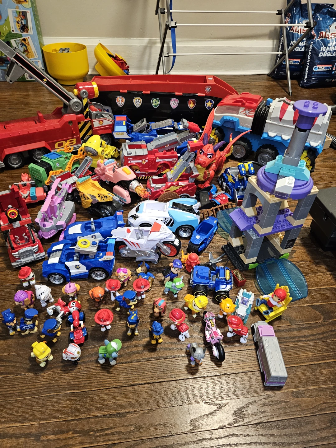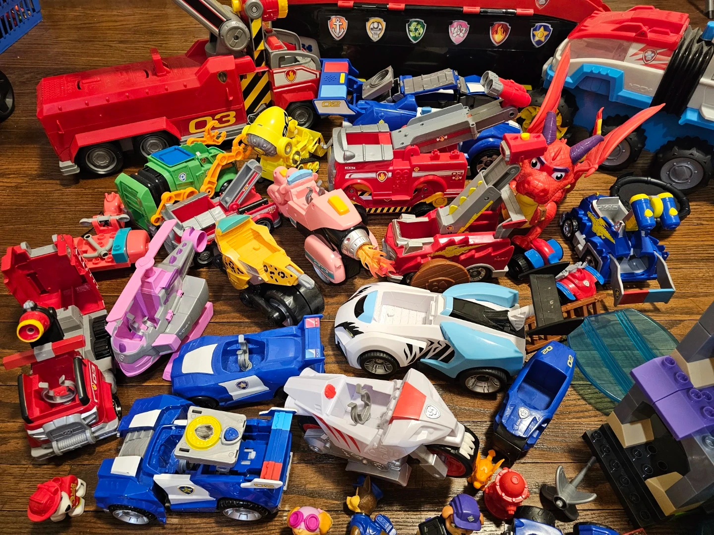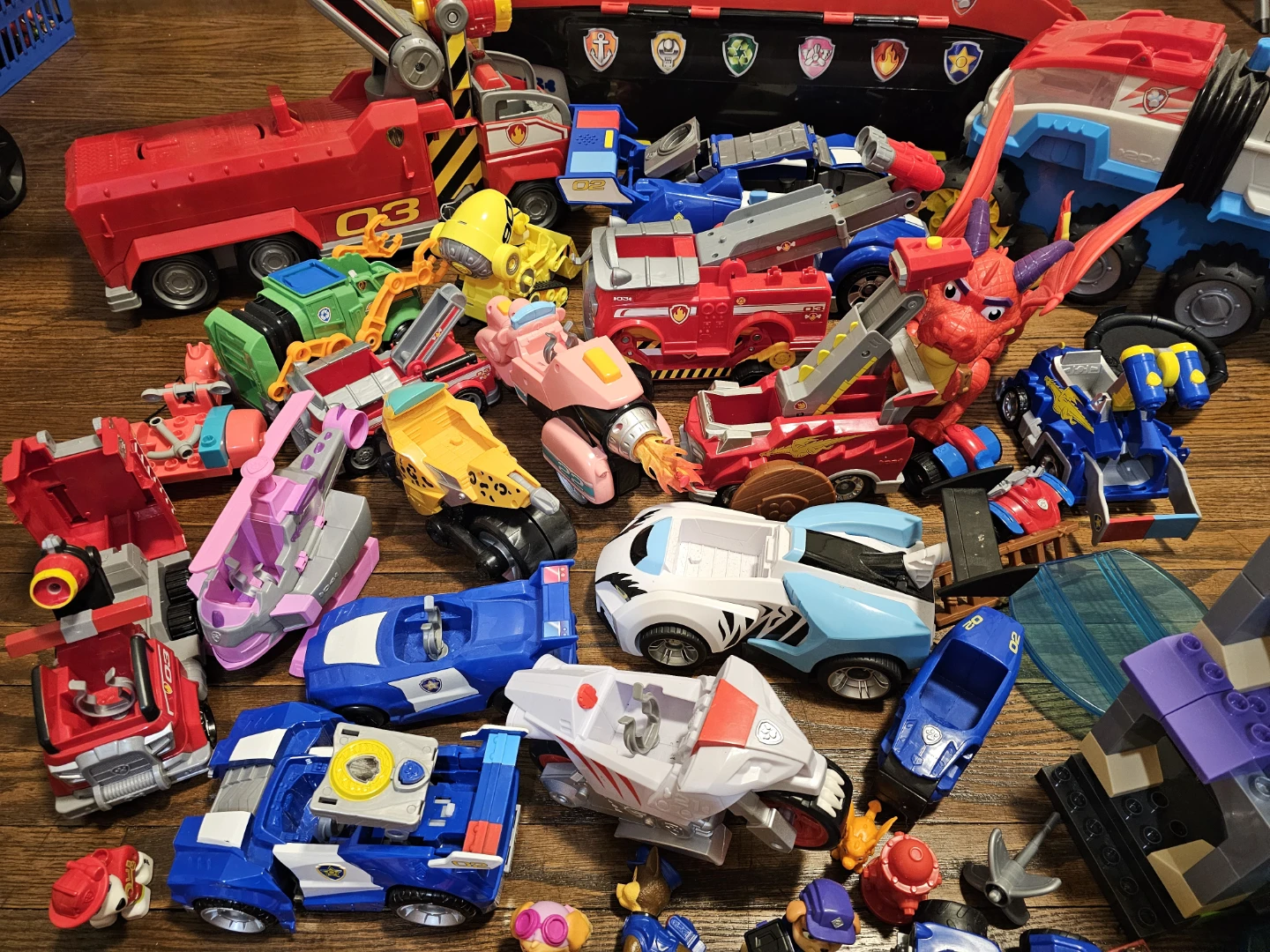Selling a big lot of Paw Patrol toys! Includes the Paw Patroller and Mission Cruiser, plus lots of figures and vehicles. Great for any Paw Patrol fan!