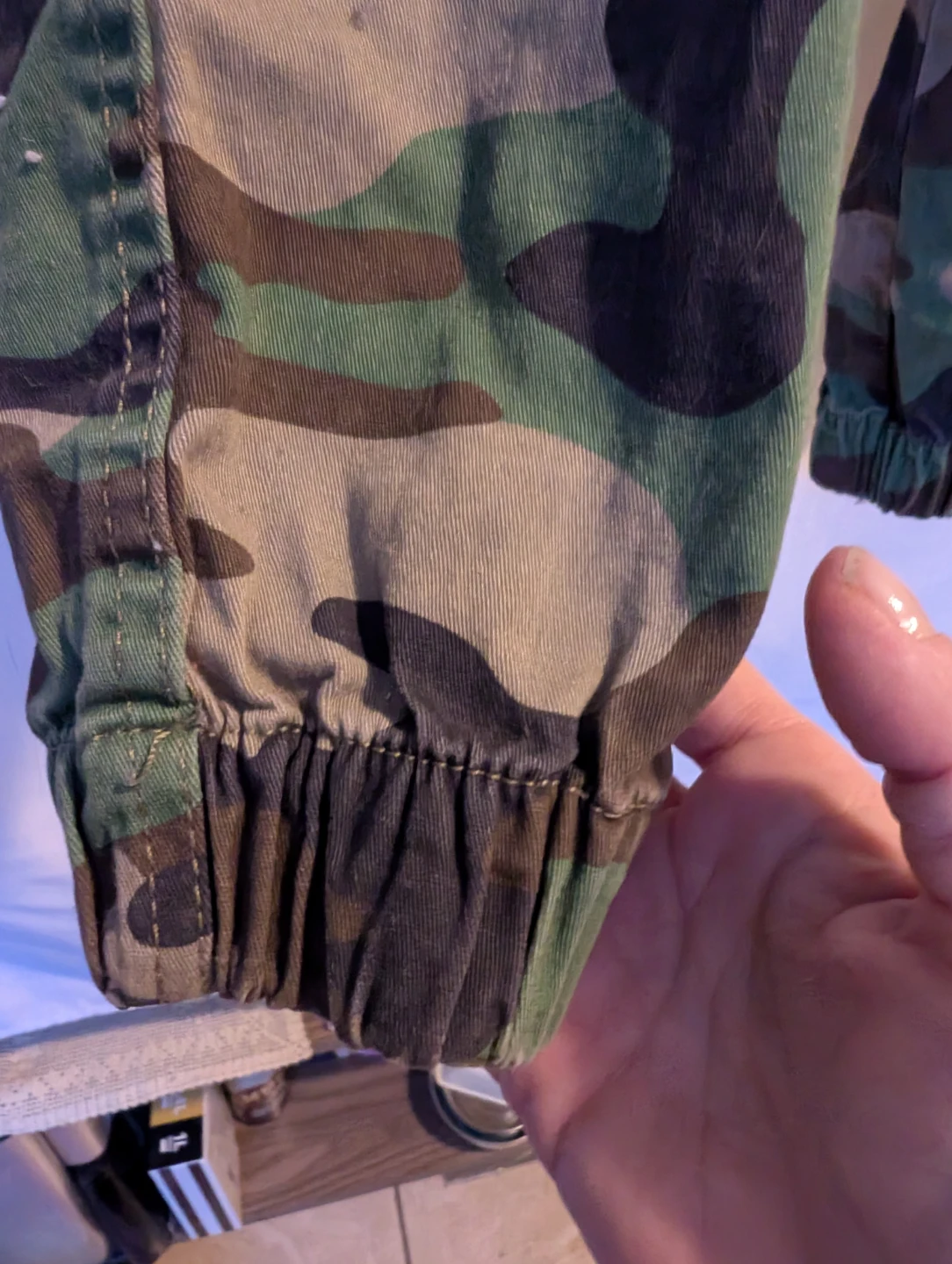 Elastic waist and ankles.