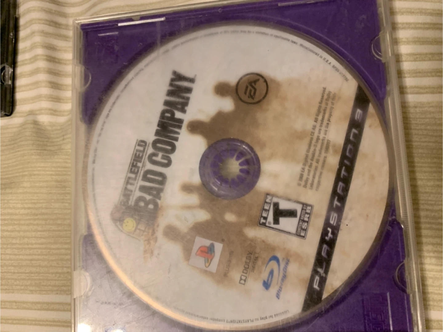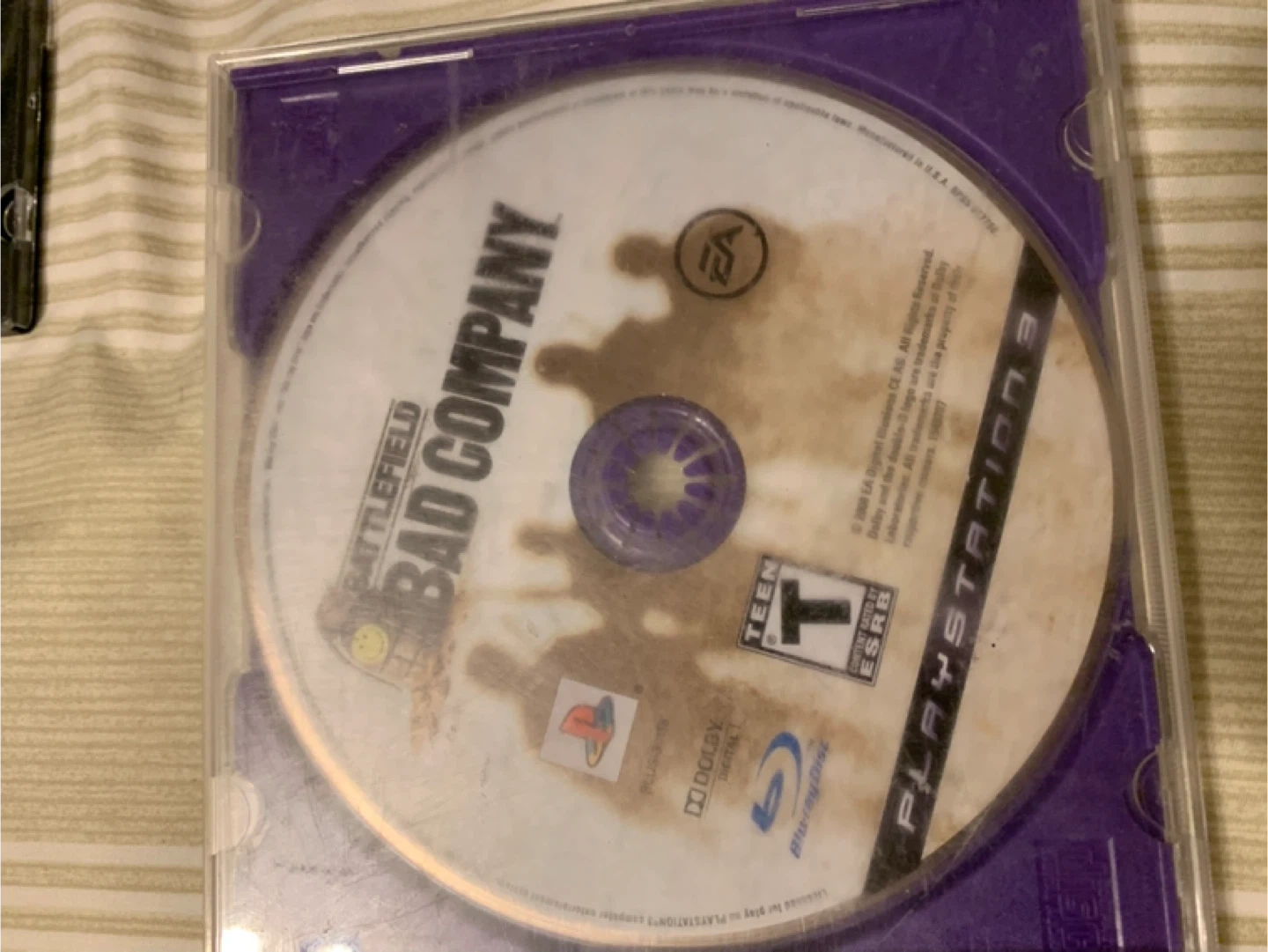 Selling Battlefield Bad Company for the PlayStation 3. Rated Teen by ESRB. It's a Blu-ray disc and features Dolby Digital audio