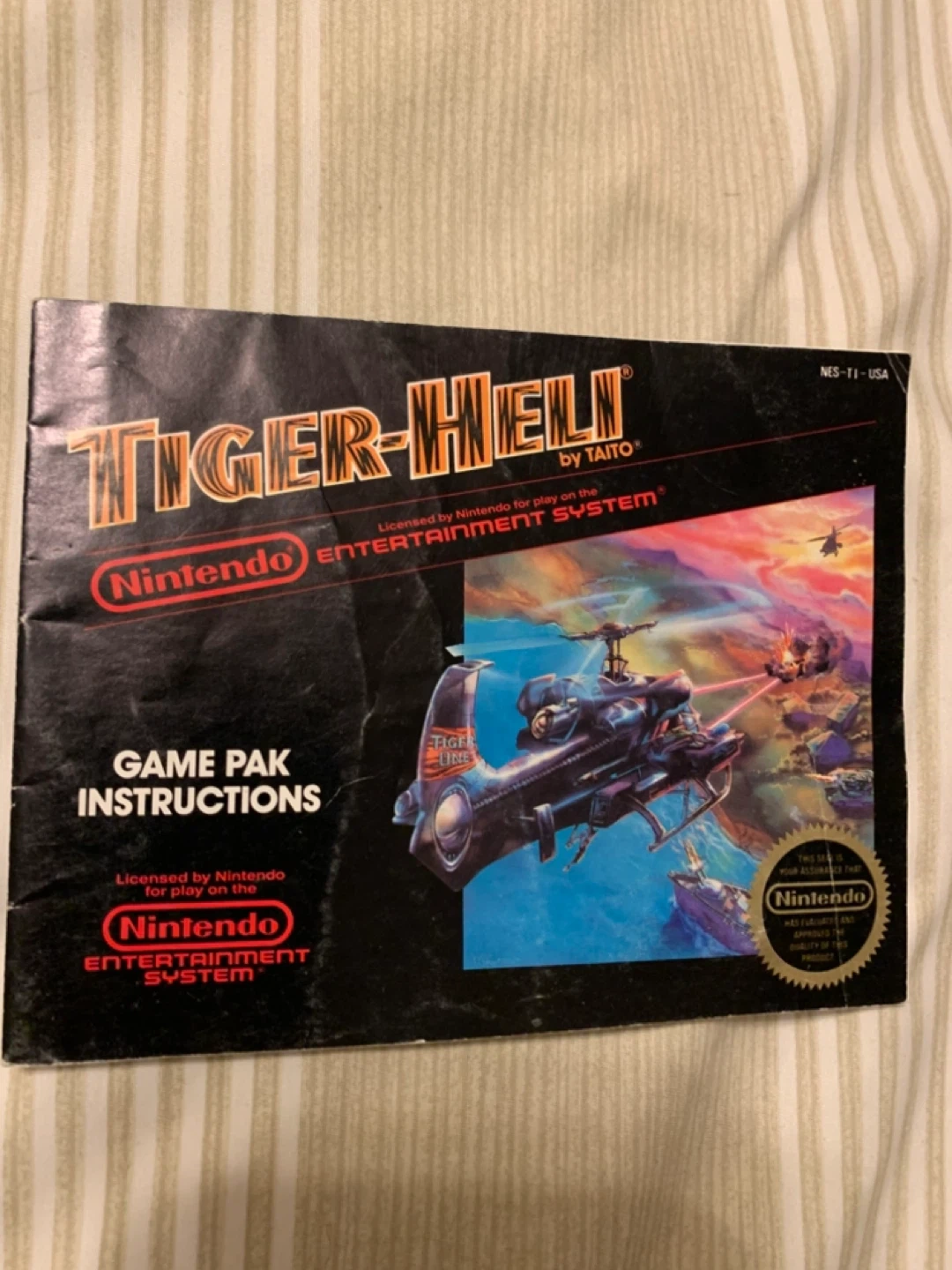 Selling the game pak instructions for the Nintendo game Tiger-Heli by Taito! Licensed by Nintendo for play on the Nintendo Entertainment System. This seal is your assurance that Nintendo has evaluated and approved the quality of the product