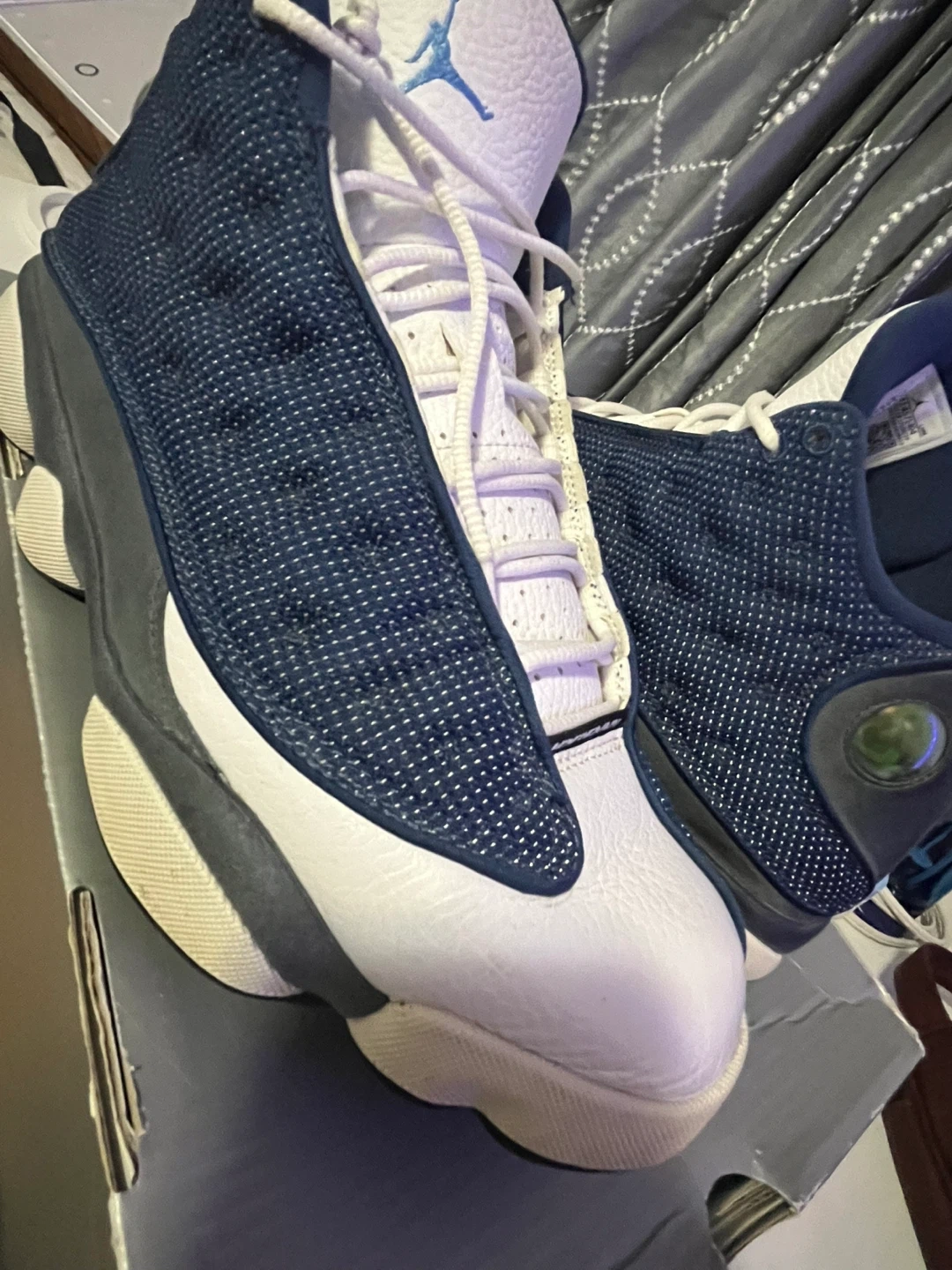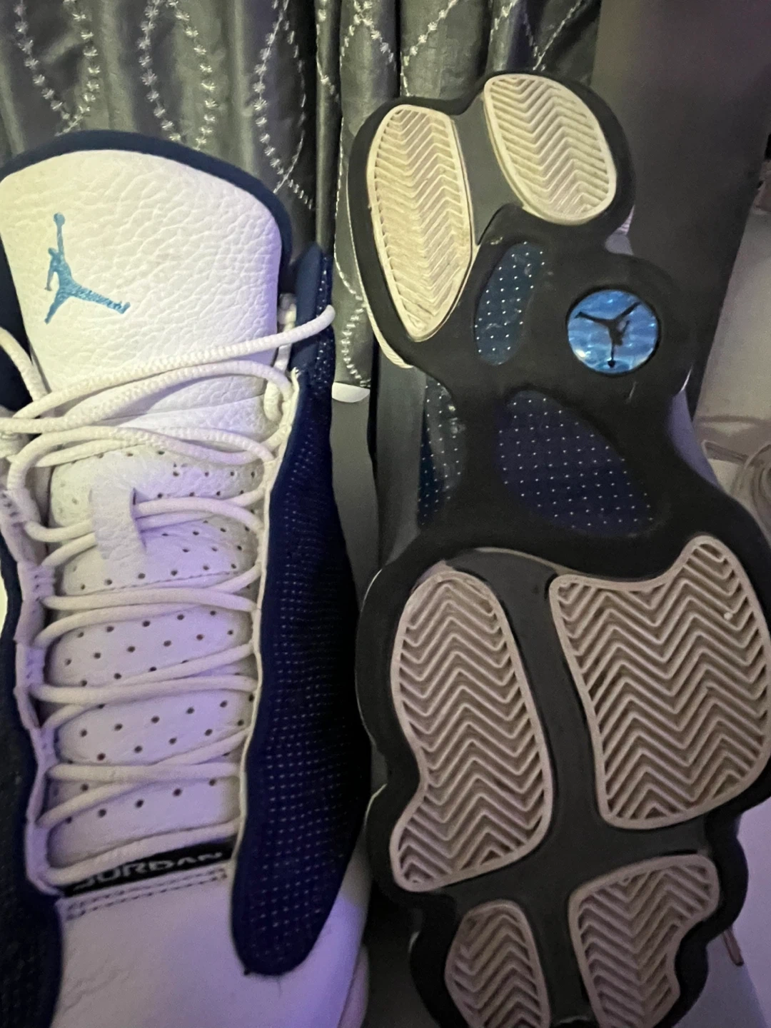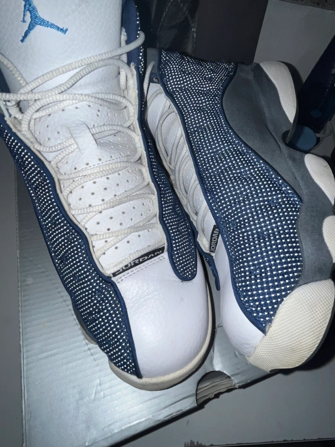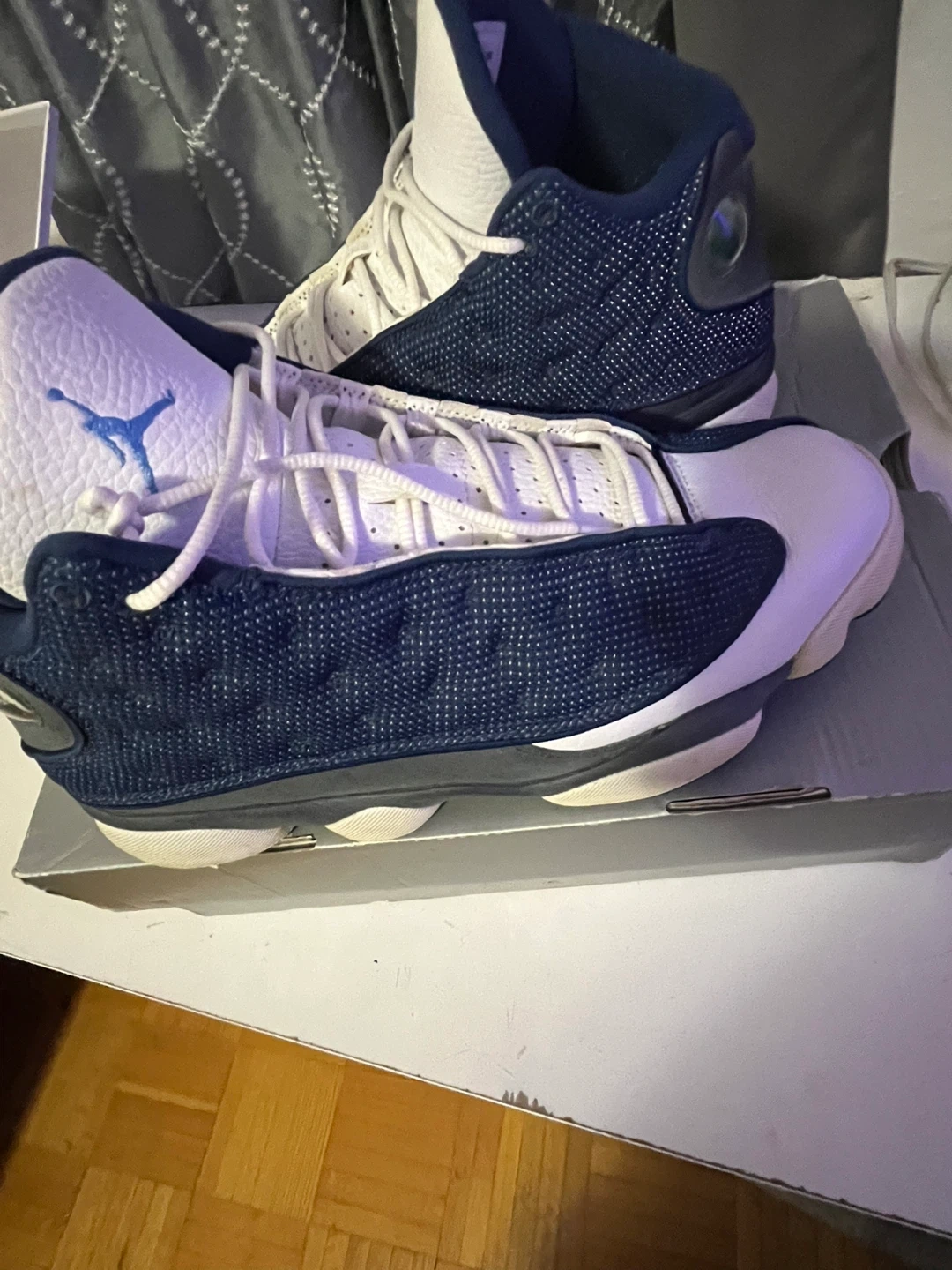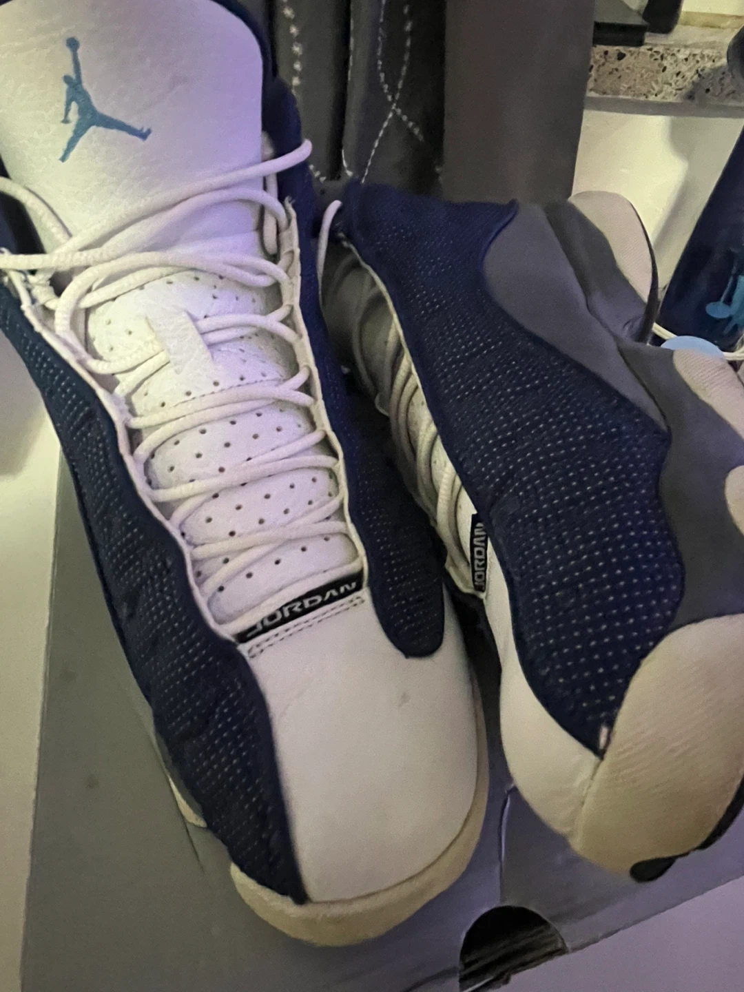 Selling a pair of Air Jordan 13 Retros in white and navy. They're in good condition and ready for a new owner! Comes with the original box can go lower