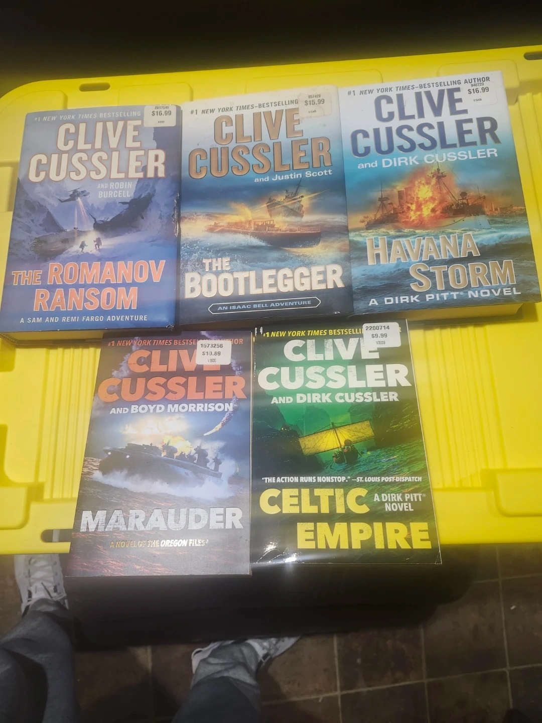 Selling a collection of Clive Cussler novels! Includes titles like The Romanov Ransom, The Bootlegger, Havana Storm, Marauder, and Celtic Empire. Perfect for fans of action and adventure