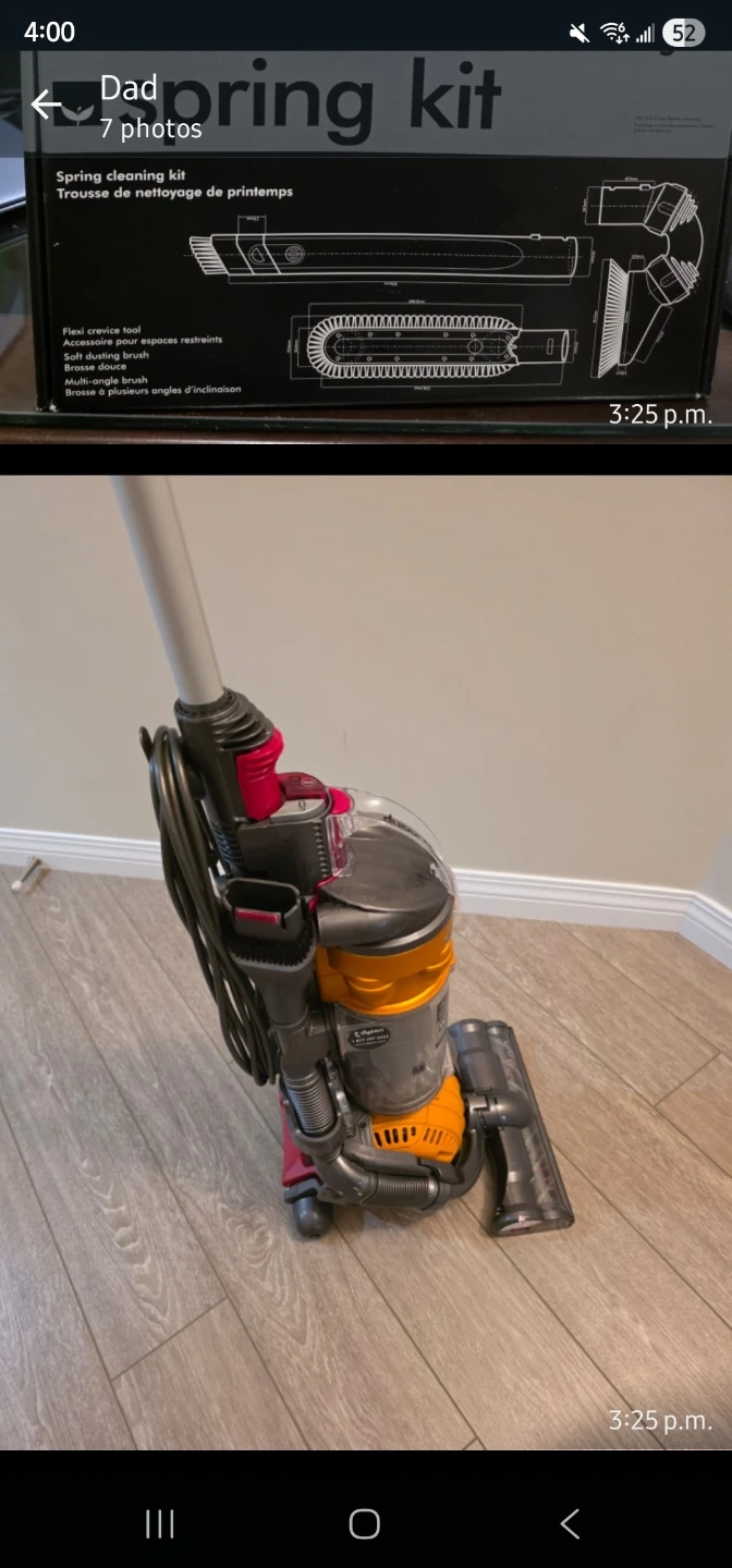 Selling a Dyson vacuum cleaner that comes with a spring cleaning kit! The kit includes a flexi crevice tool, a soft dusting brush, and a multi-angle brush. Perfect for all your cleaning needs! DC24