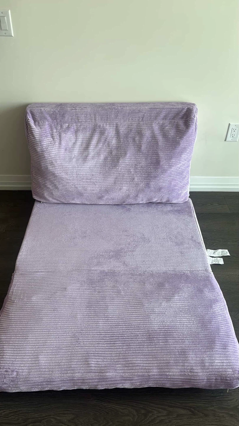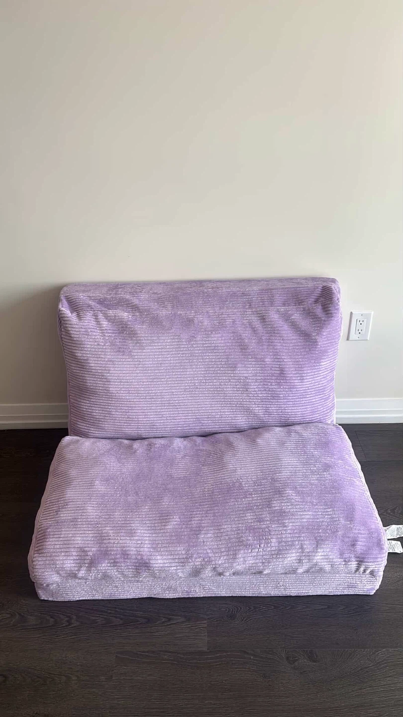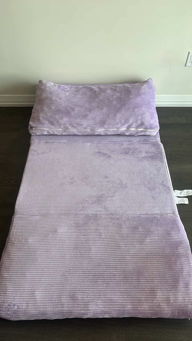 Selling a comfy purple corduroy floor lounger! It's in great condition and perfect for relaxing or reading a book. The lounger features a soft, plush texture that's super cozy. Great for small spaces!