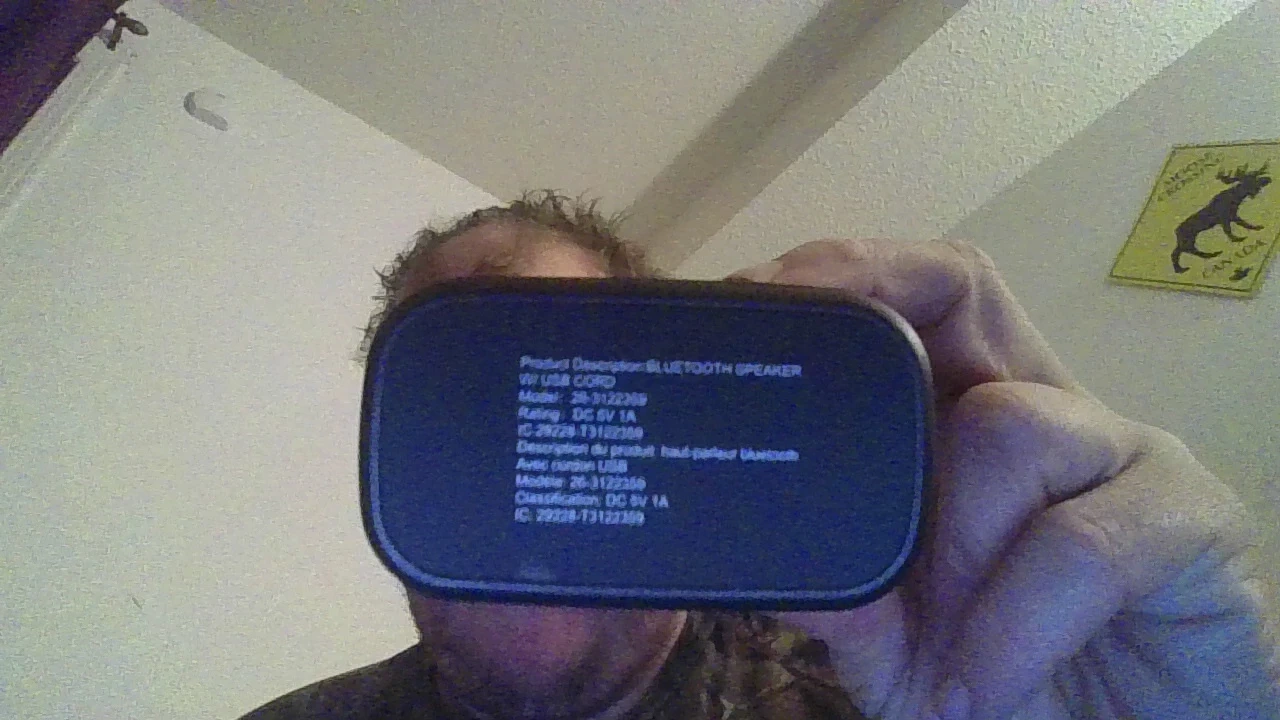 Selling a Bluetooth speaker. It's a WI USB cord model 26-3122309. It's rated at DC 5V 1A.