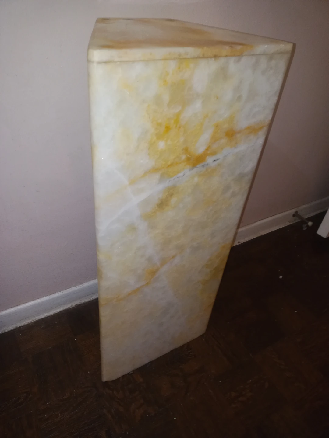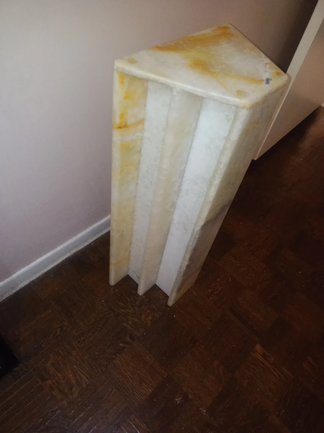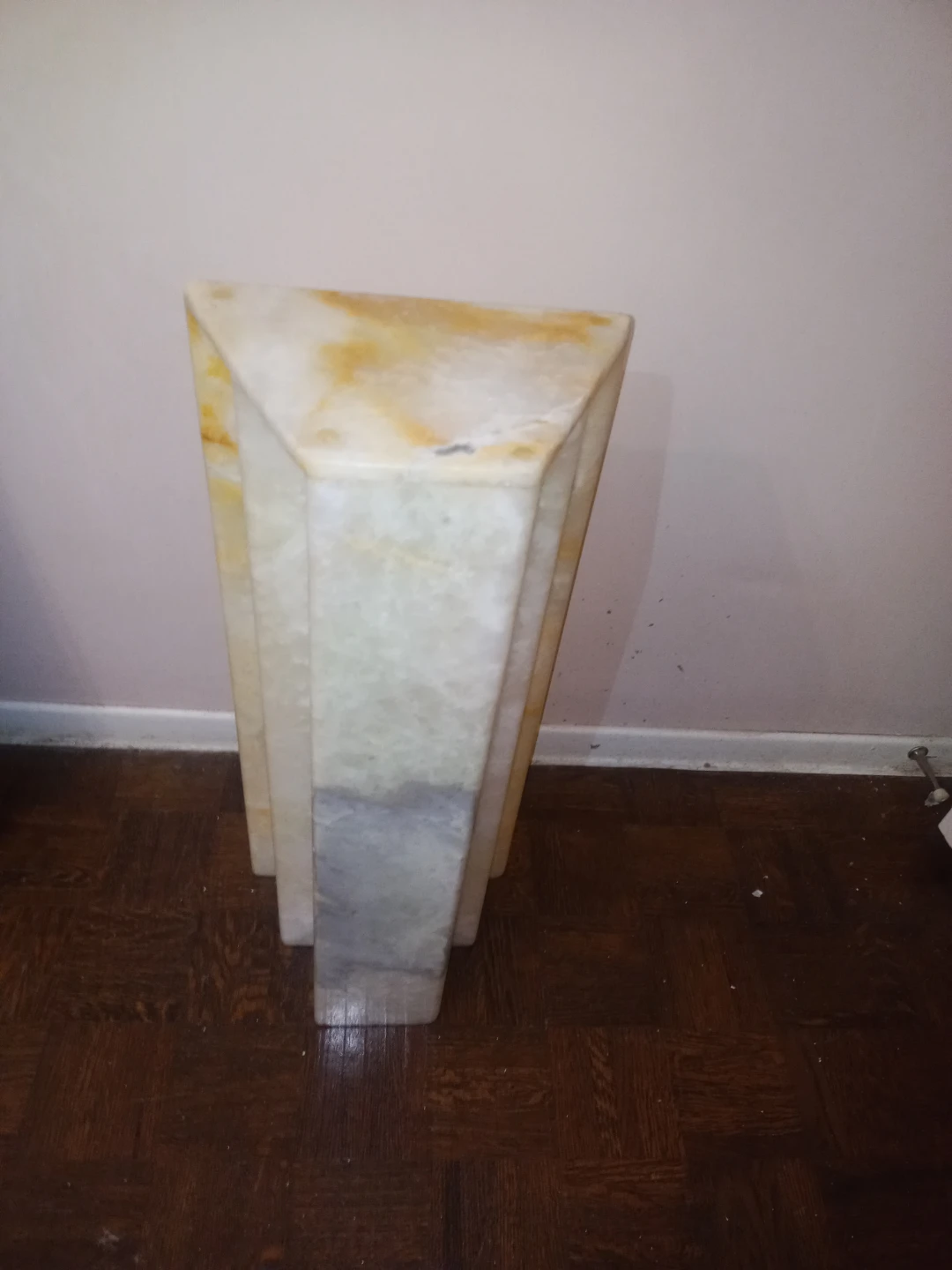There are some chips on the bottom of the pedestal but not that noticeable. See all pictures provided. Measurements are: