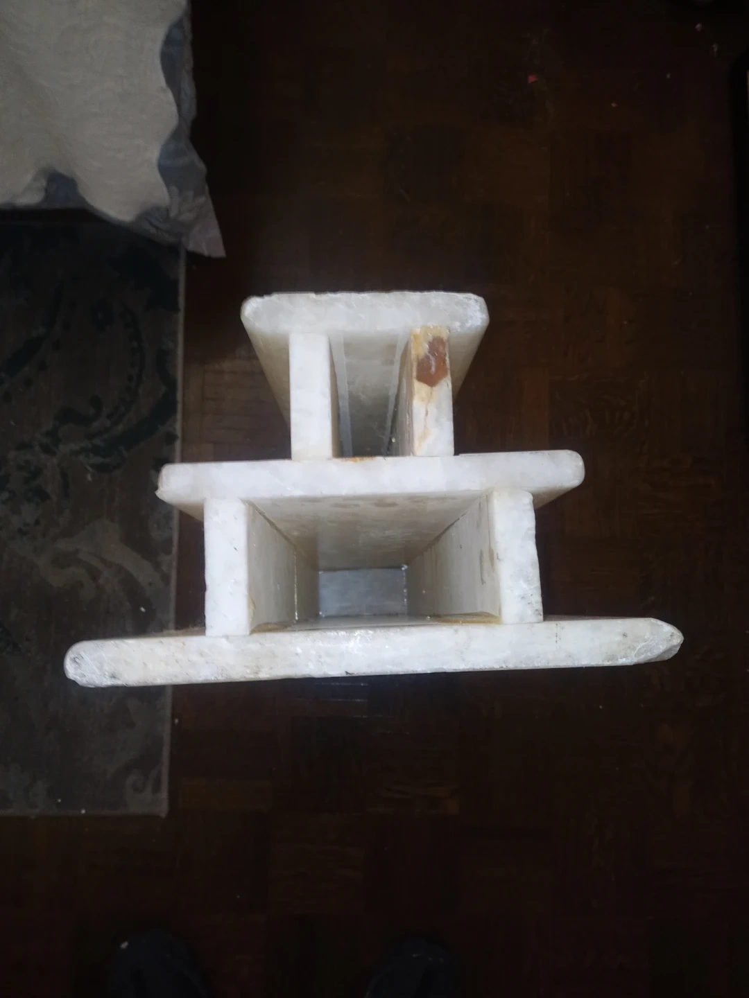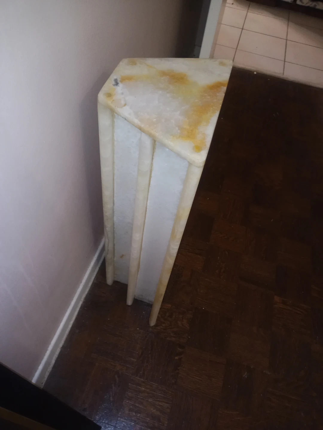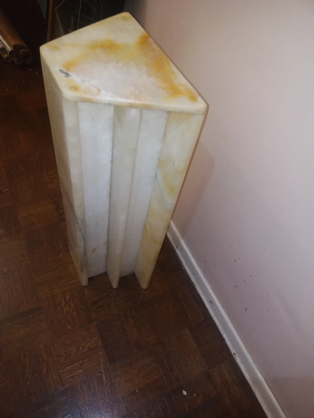 There are some chips on the bottom of the pedestal but not that noticeable. See all pictures provided. Measurements are: