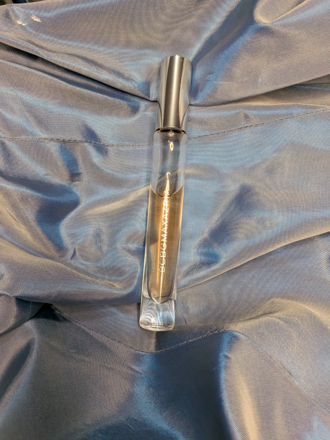 Selling a BCBGMAXAZRIA rollerball perfume. It's perfect for on-the-go touch-ups and travel. Small enough for a small purse. The scent is light and refreshing! No vanilla or heavy musky scent