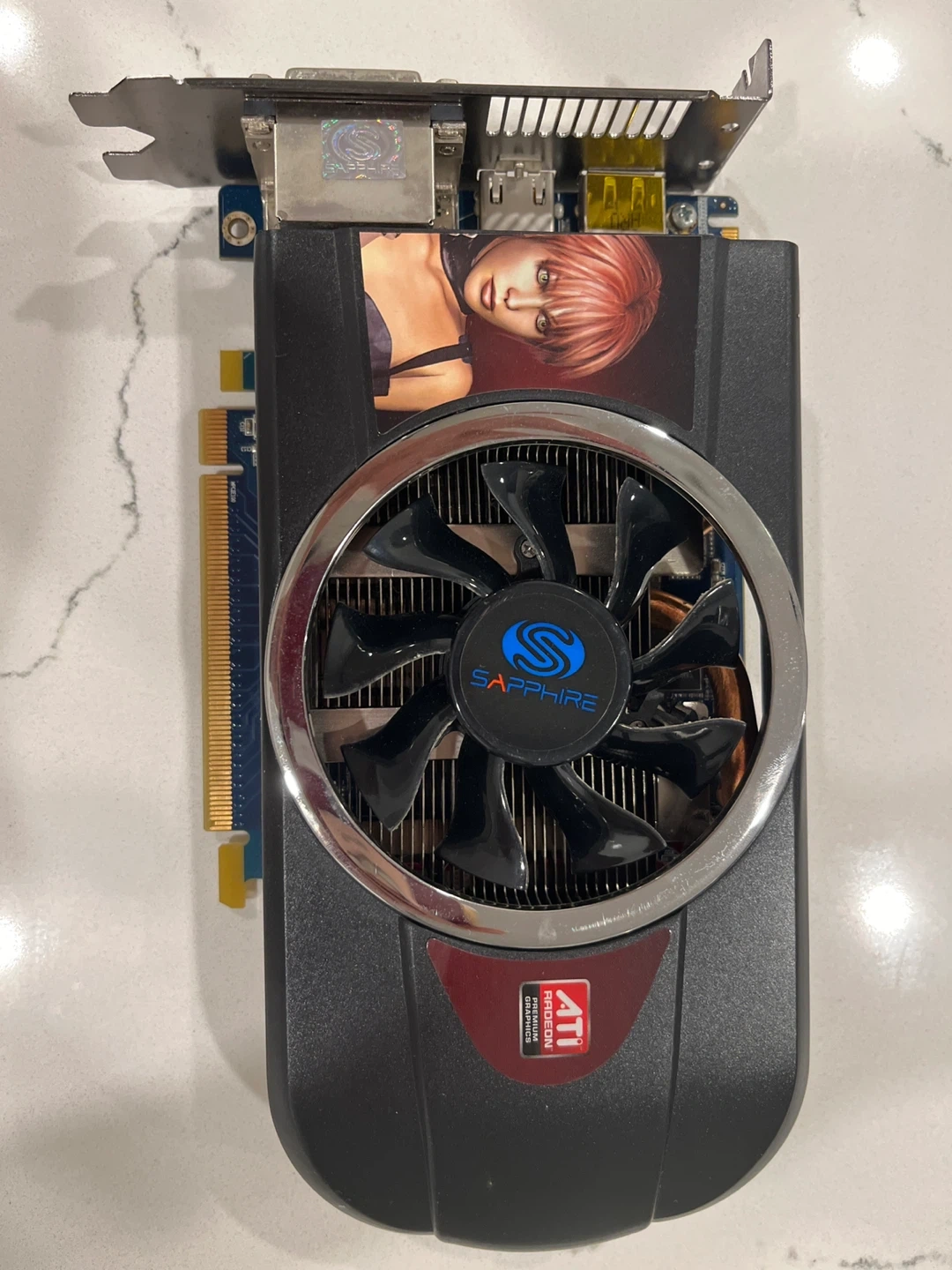 Selling a used Sapphire ATI Radeon HD graphics card. It's in good working condition and ready to boost your PC's graphics performance. Perfect for gaming or video editing!