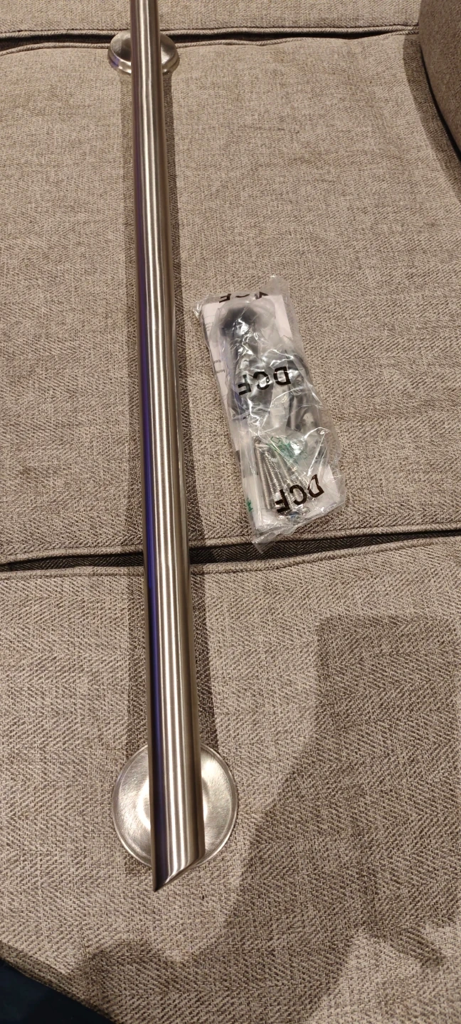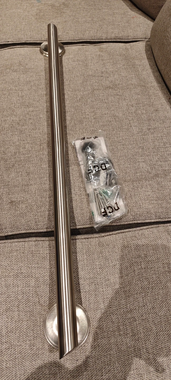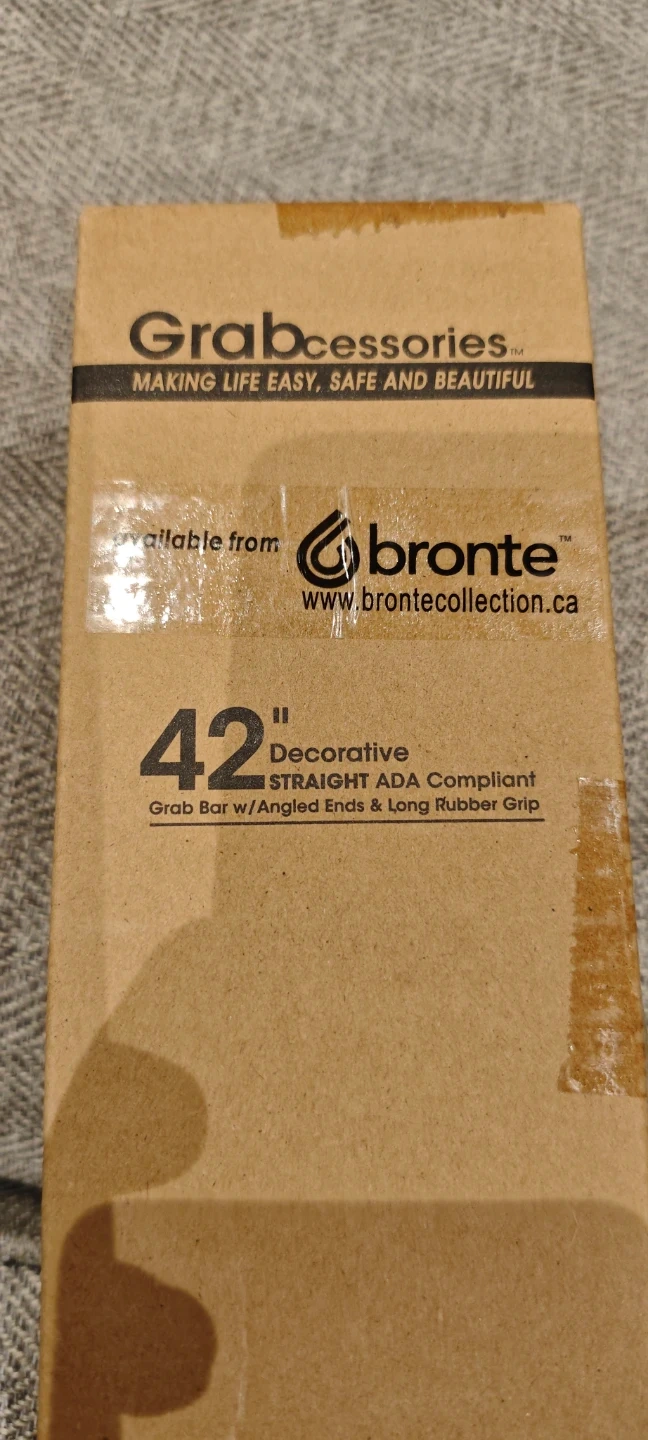 Selling a brand new Grabcessories 42" decorative straight ADA compliant grab bar with angled ends and long rubber grip. It's still in the original box and includes all the necessary components for installation. Perfect for adding safety and style to your bathroom!