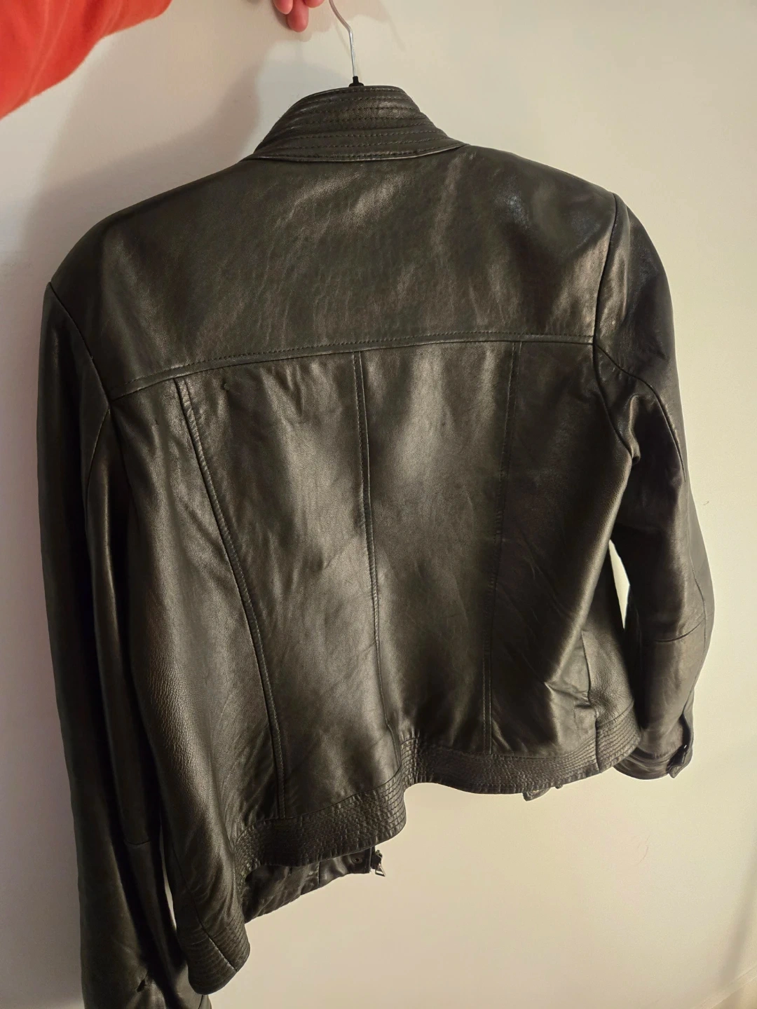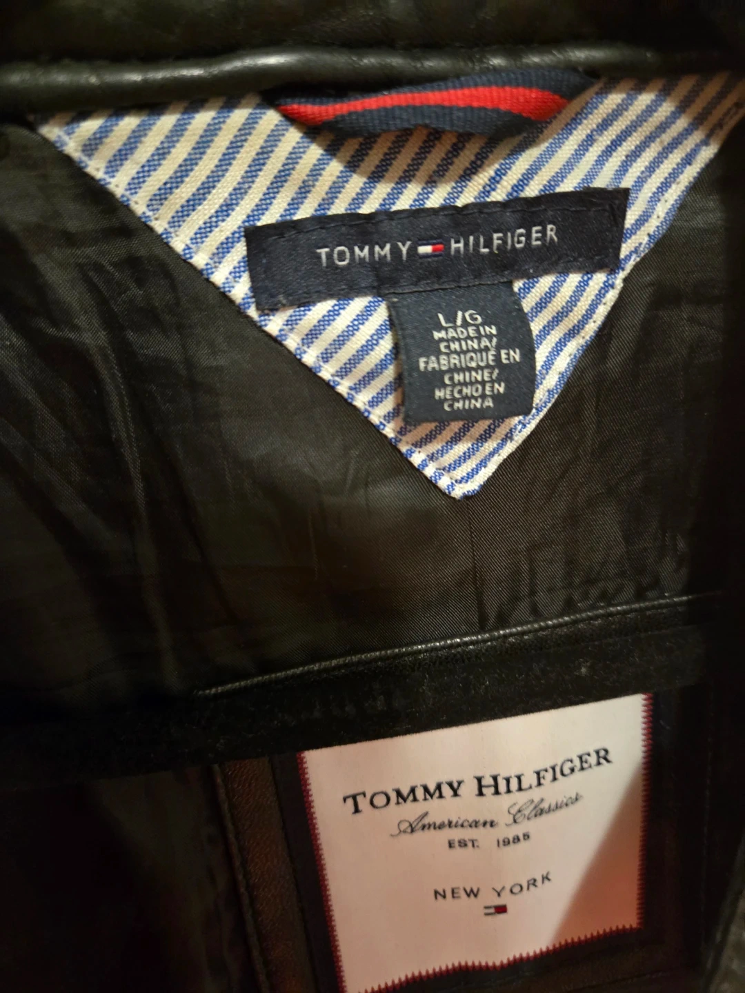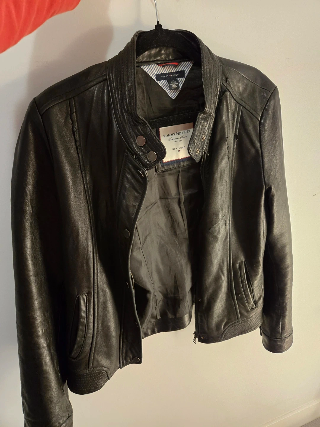 Tommy Hilfiger leather jacket in size L. For womens, but can also be for mens. No issues, overall clean.