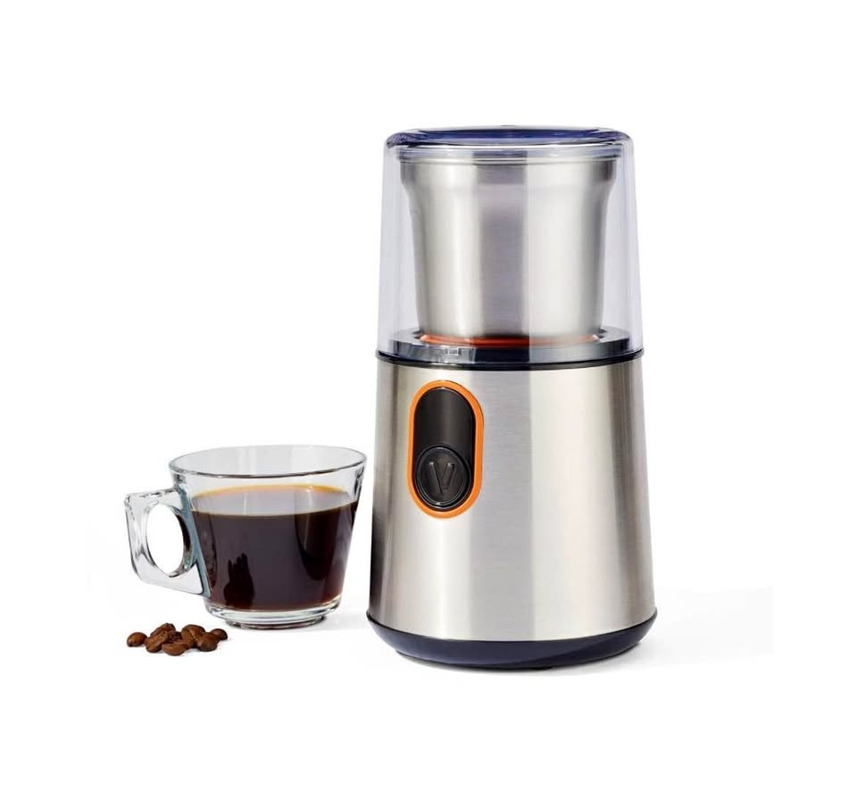Vida by PADERNO Coffee Grinder features a 304 stainless steel blade, lid lock mechanism, removable cup assembly, stainless steel housing, and is easy to use with one button. Colour: Silver. Wattage: 180W
