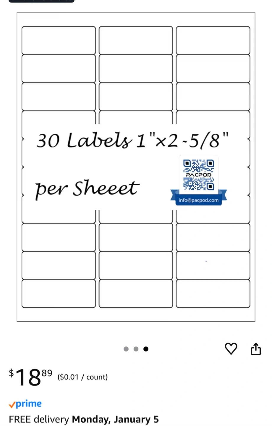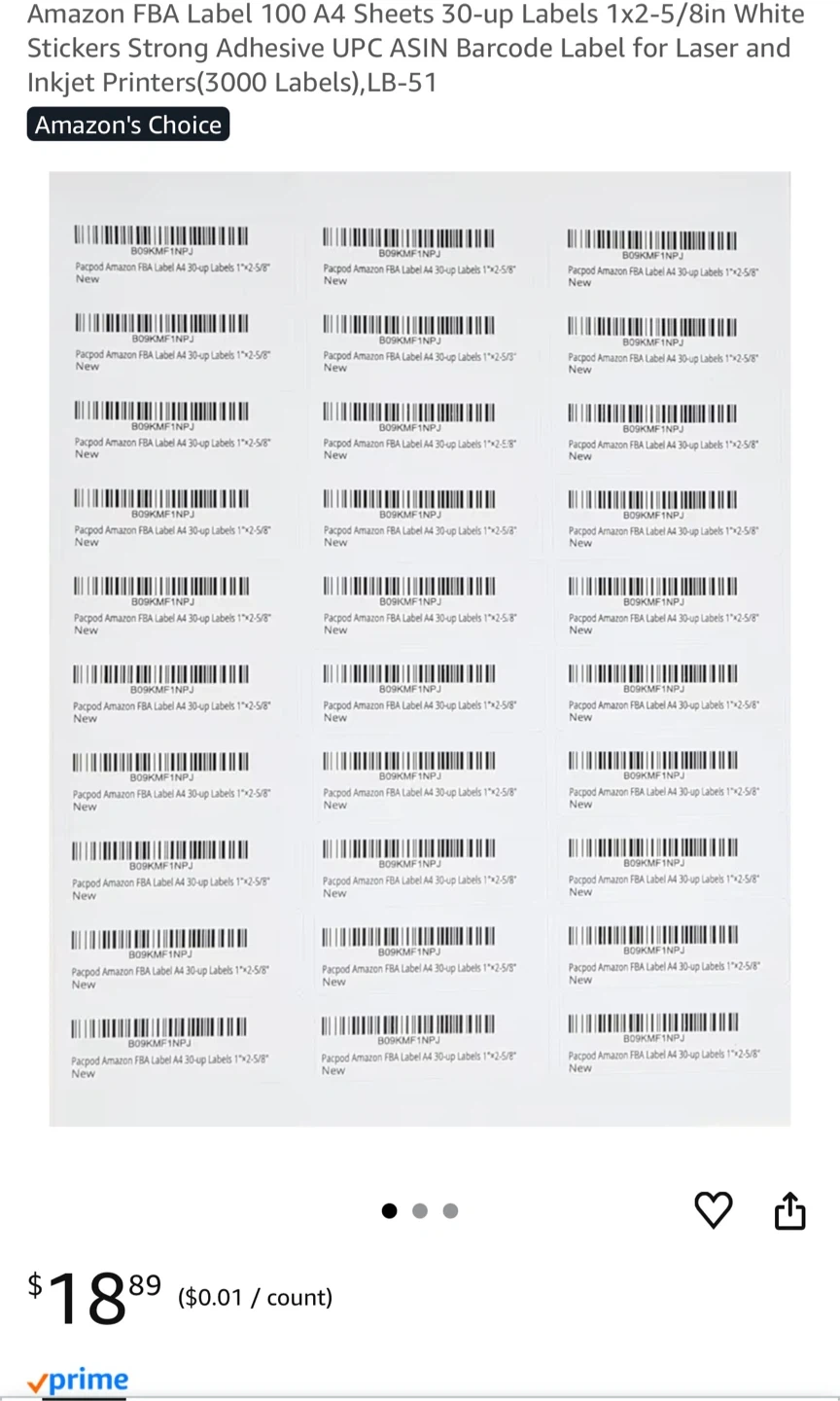 These amazon FBA labels are brand new and ready to go! Each sheet has 30 labels, and the labels are 1" x 2-5/8", 3000 labels pack