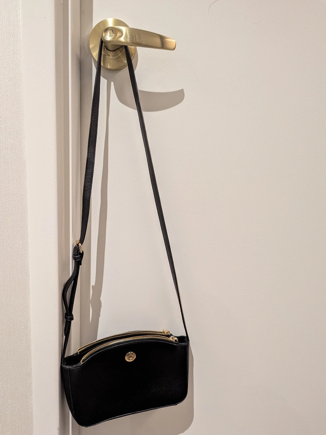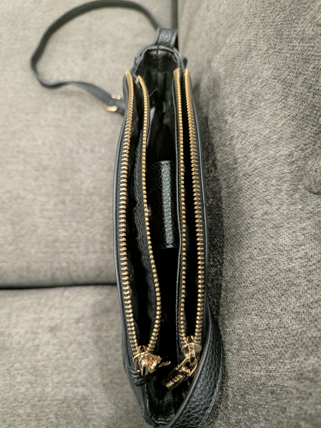 cute Anne Klein black crossbody bag in great condition and has a few zippered compartments inside for organization, adjustable strap.