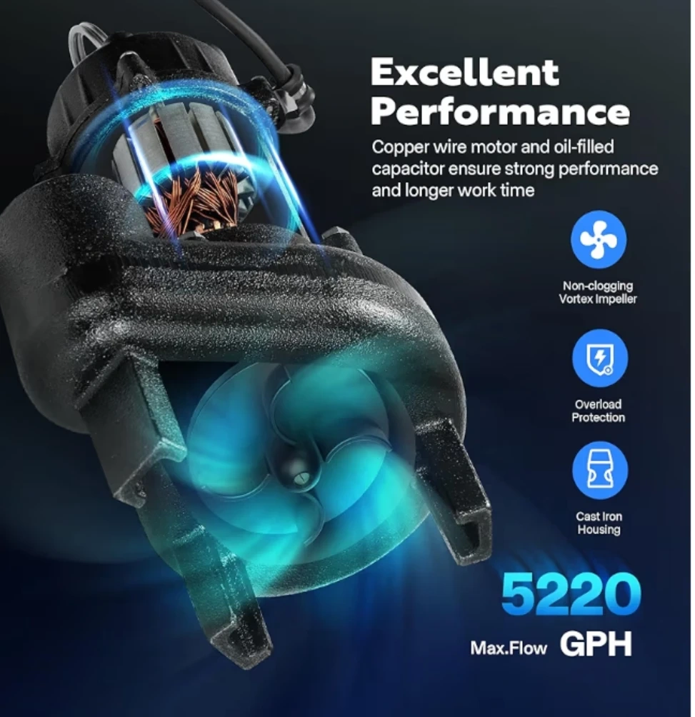 - Max flow rate: 5220GPH