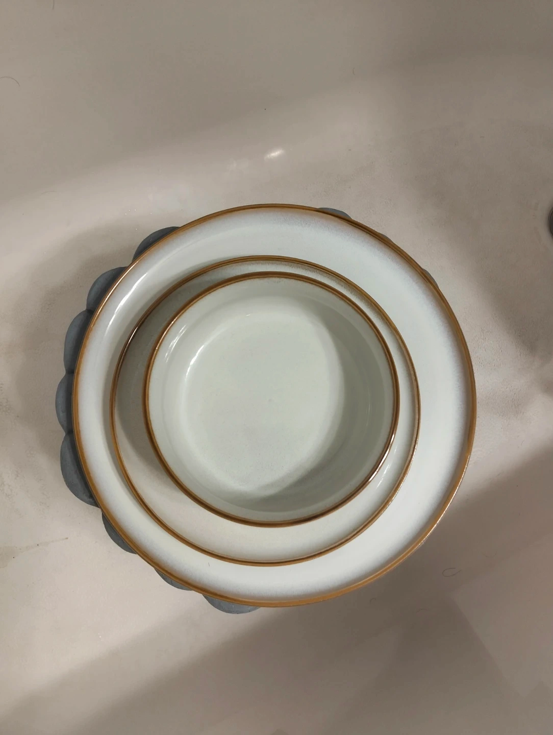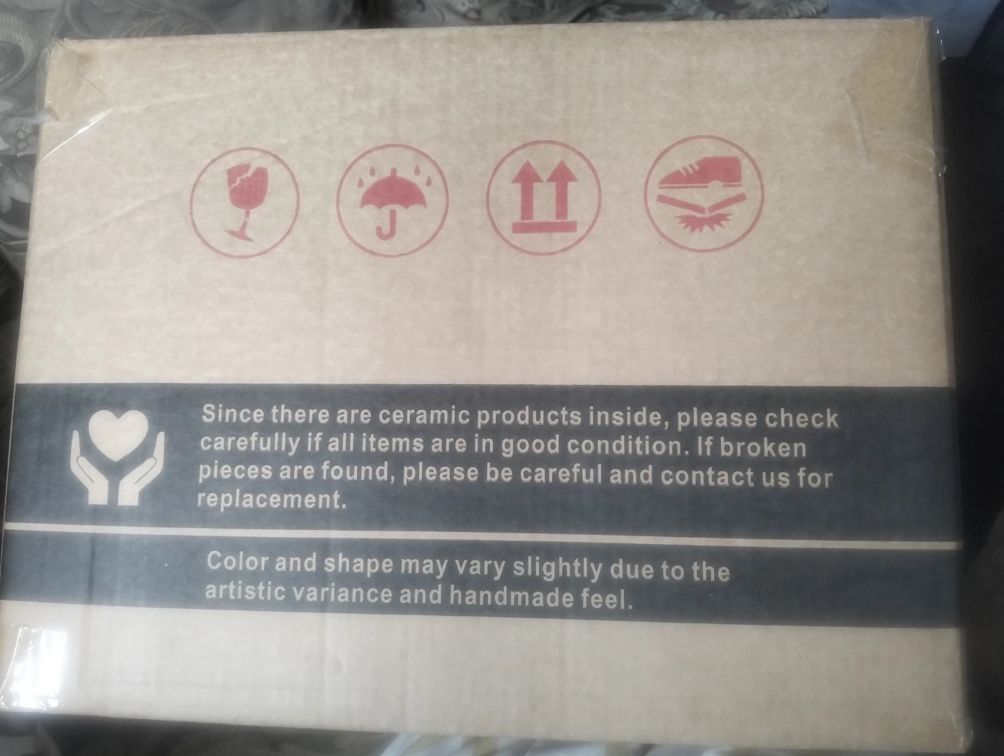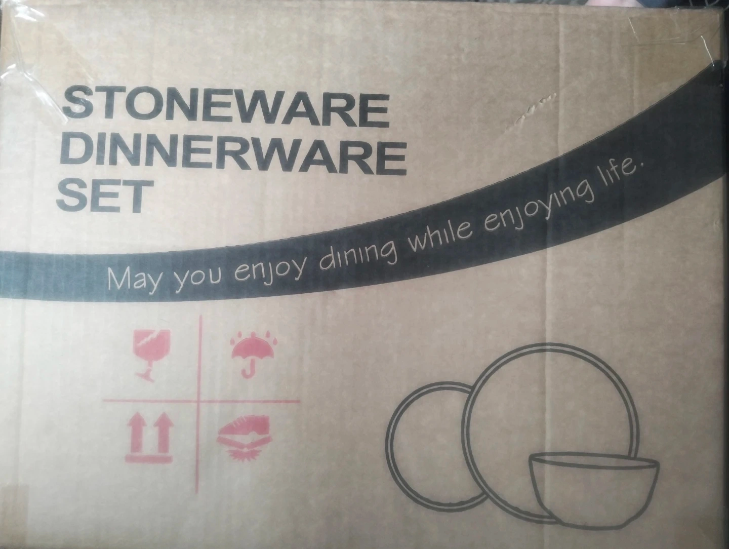 Selling a brand new stoneware dinnerware set, still in its original box! This set is perfect for enjoying meals and adding a touch of elegance to your dining experience. The box indicates that it's important to check if all items are in good condition, as they are ceramic. The color and shape may vary slightly due to the artistic variance and handmade feel
