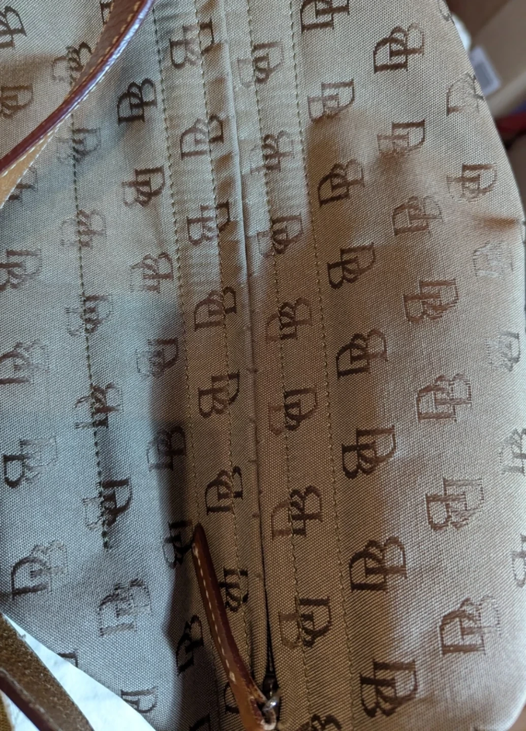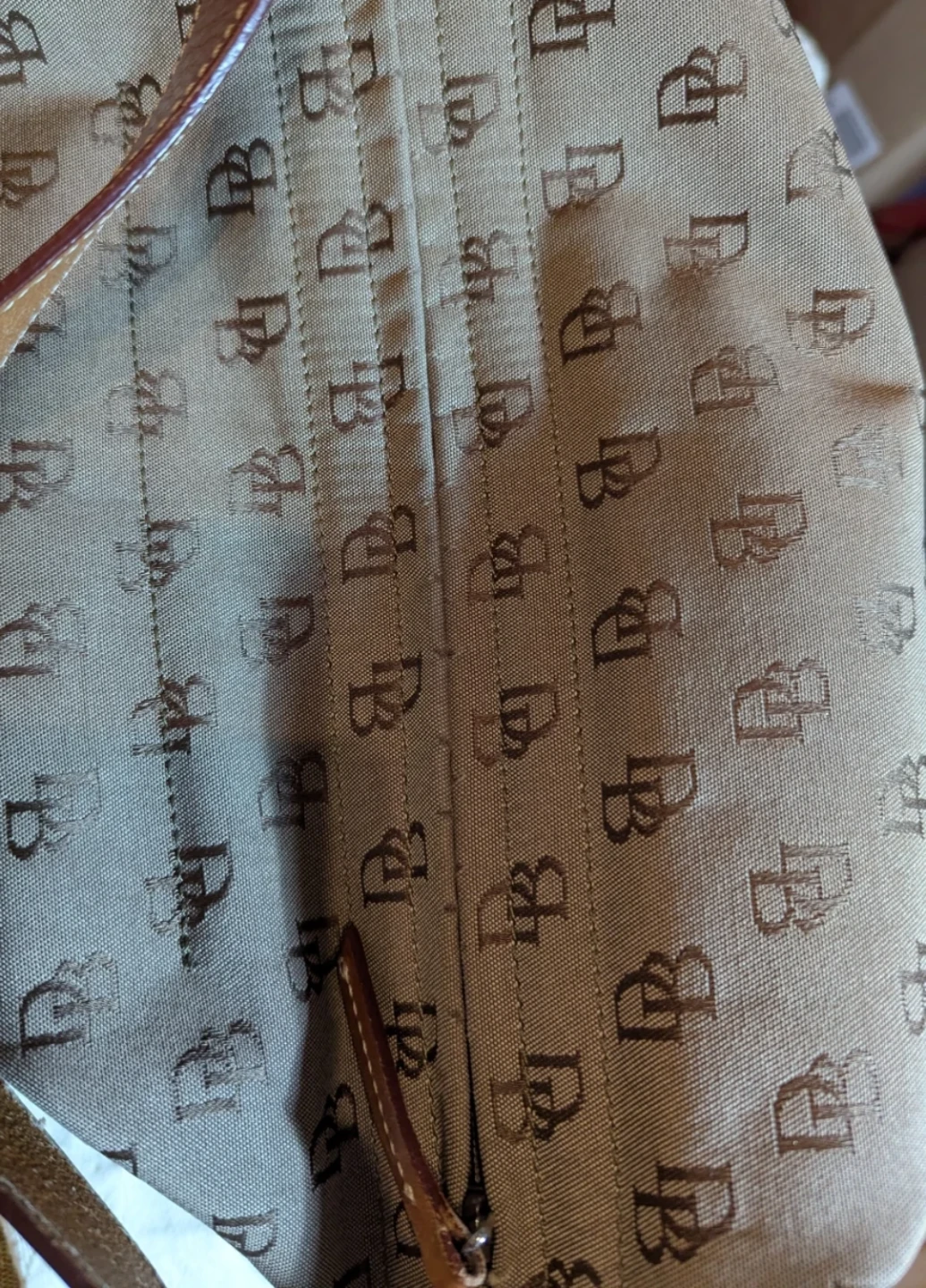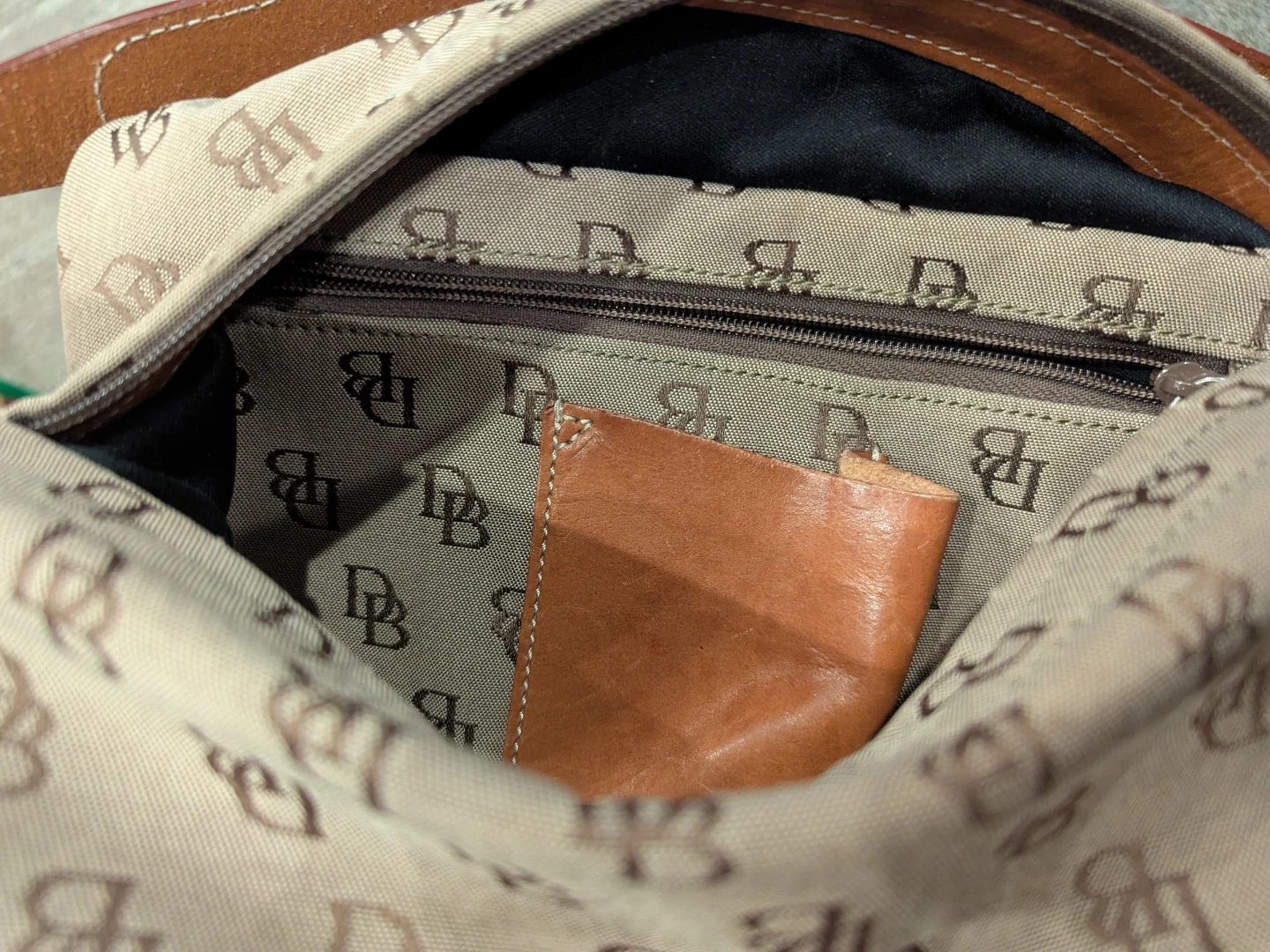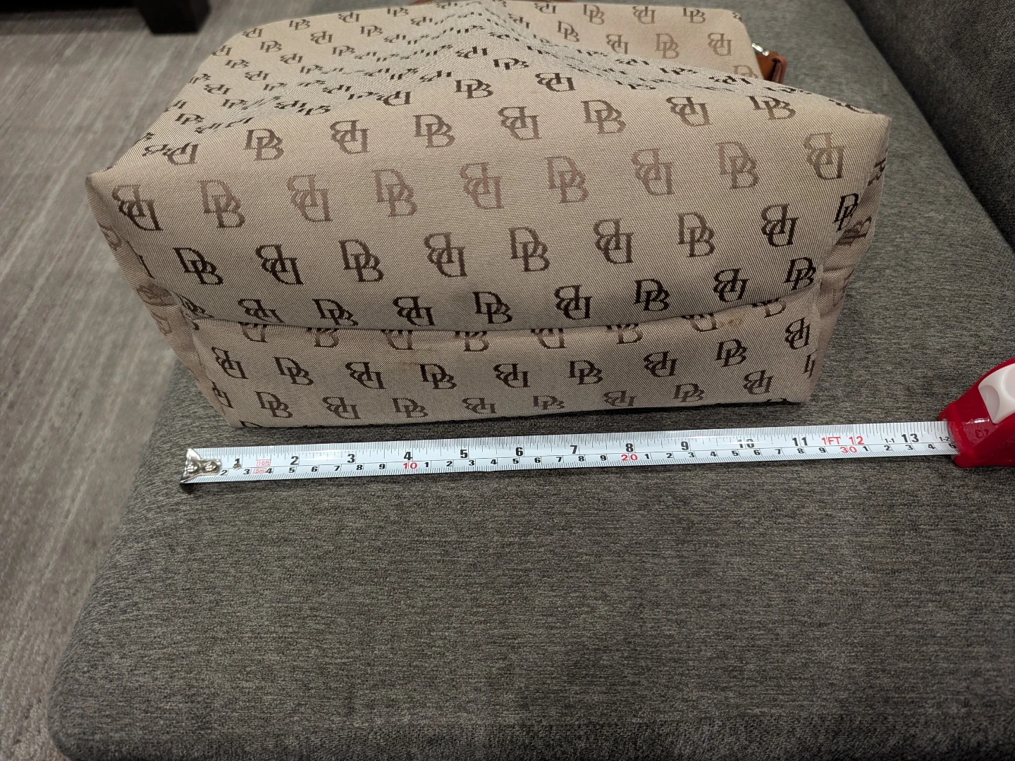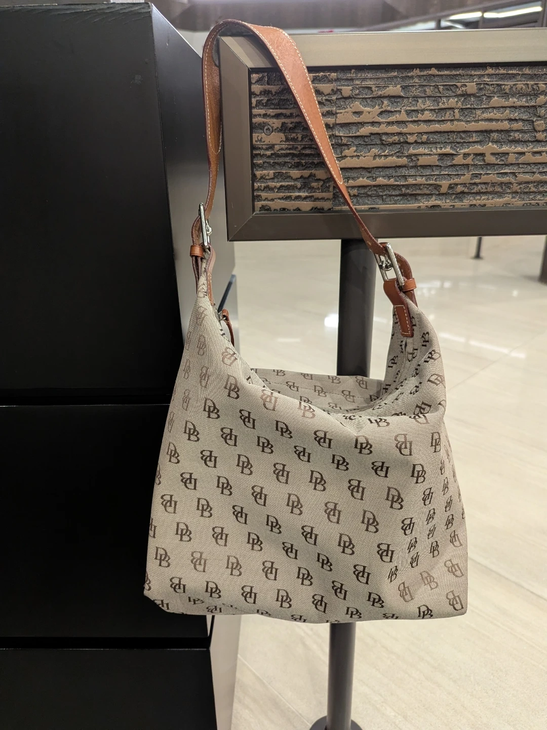Dooney & Bourke logo print canvas shoulder bag, leather strap