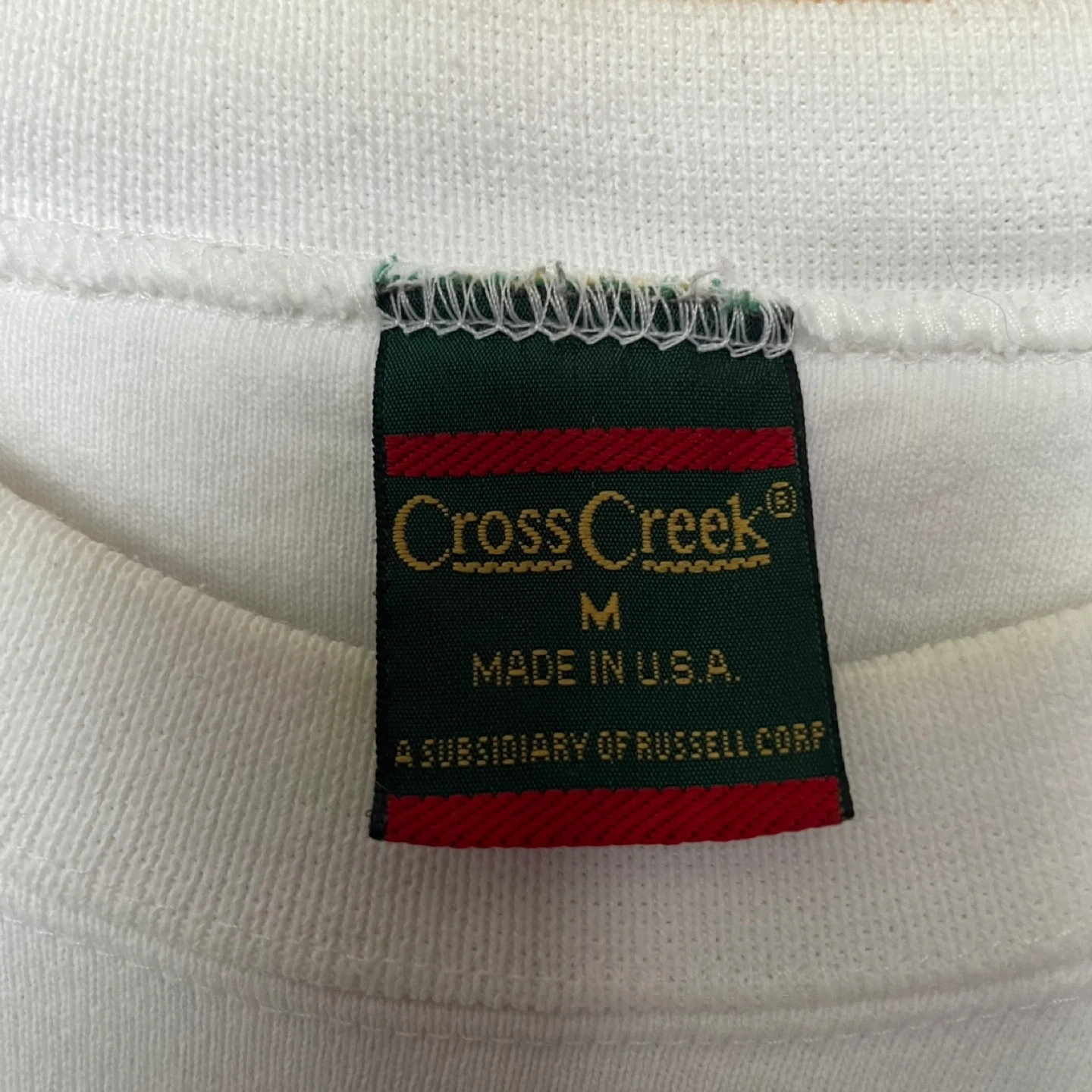 Selling a gently used Cross Creek white sweatshirt. It's a size medium and features a "Football" design. There is a small hole on the front of the sweatshirt, as pictured.