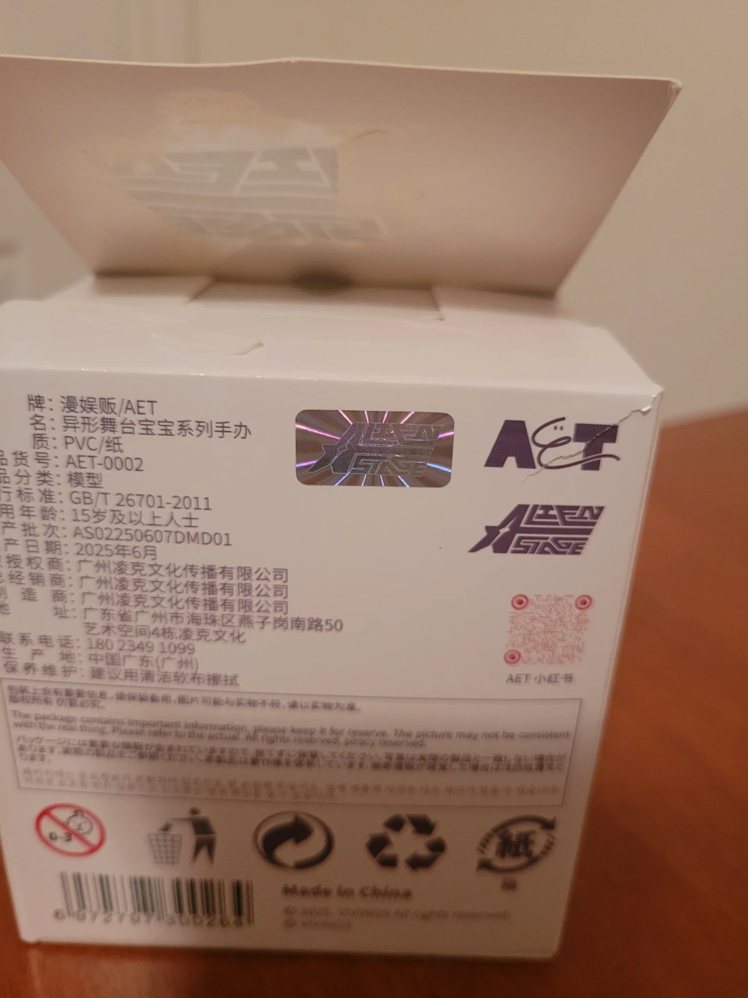 She comes with the original packaging (box is a bit ripped at the top) and card/circle stand. Great for collectors!