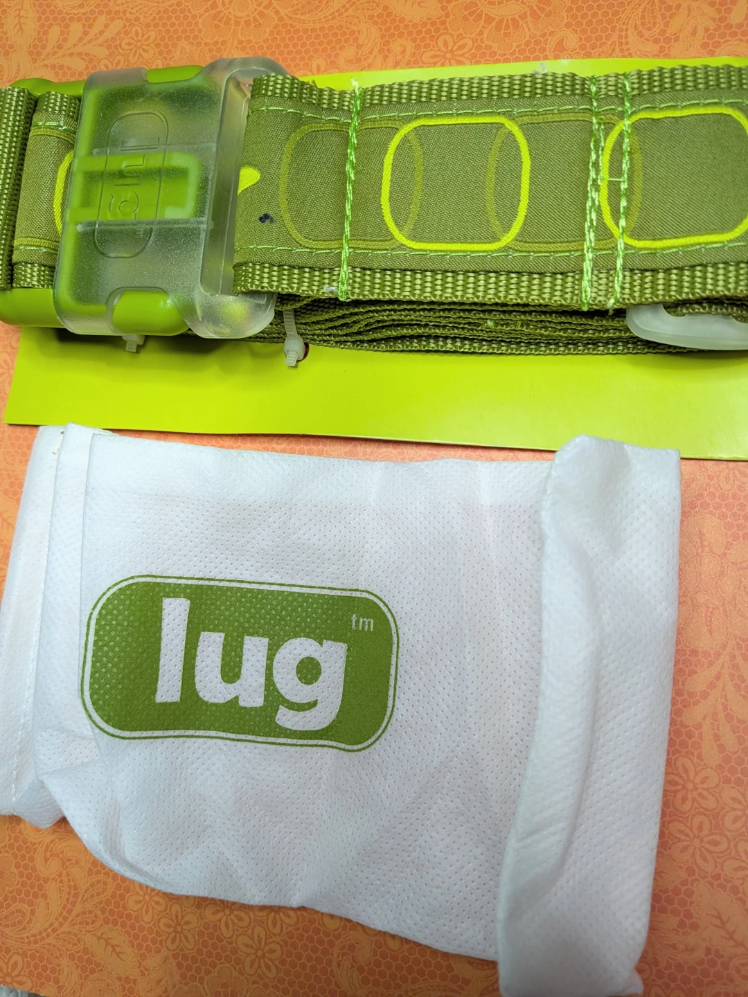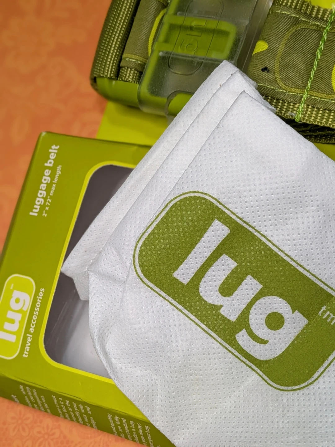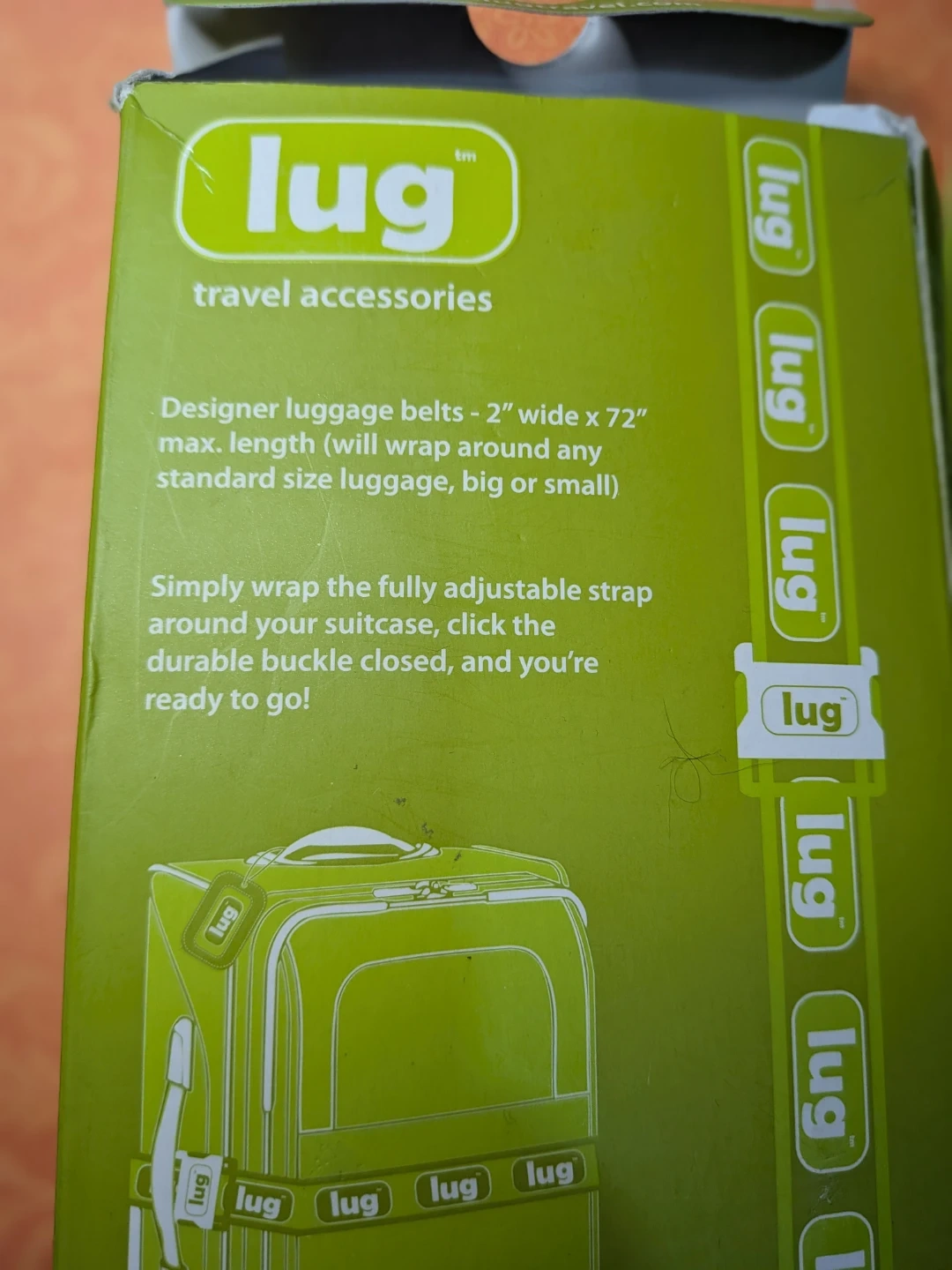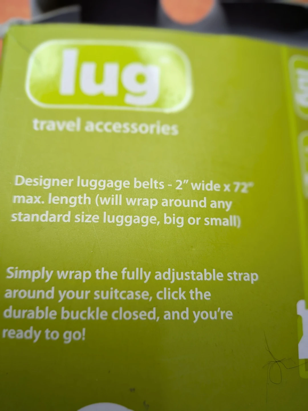 New luggage belt by Lug, still in its original packaging! This travel accessory is perfect for keeping your luggage secure. It comes with a convenient storage bag to keep it clean and protected when not in use