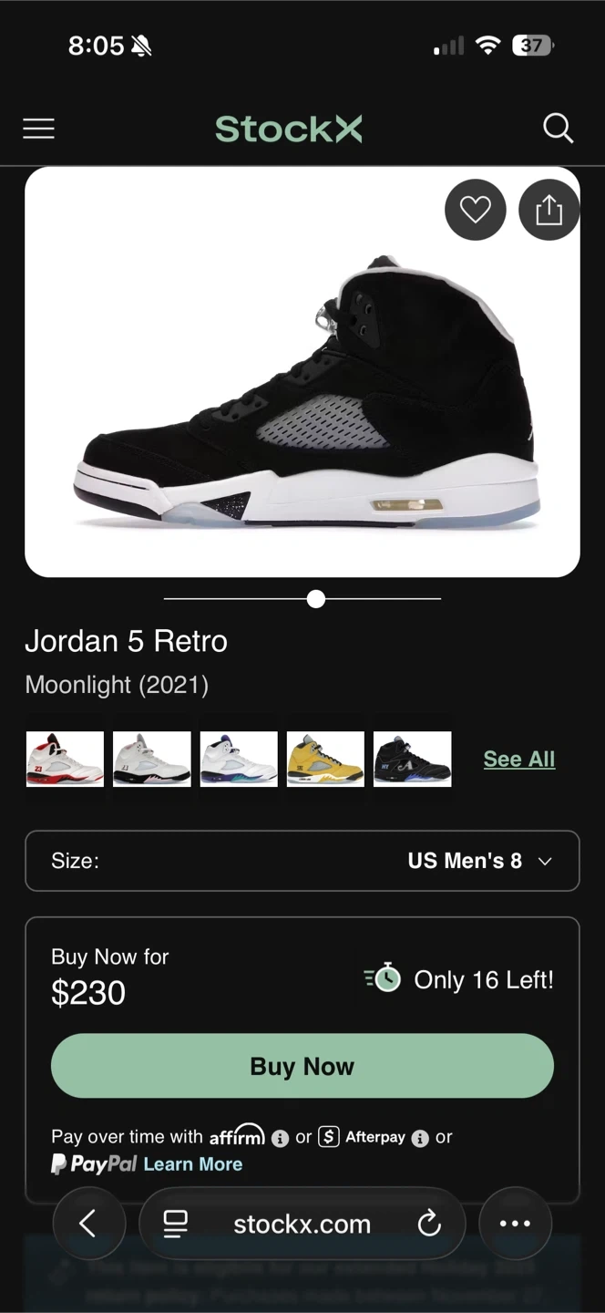 Jordan 5 Retro Moonlight (2021) US Men's 8