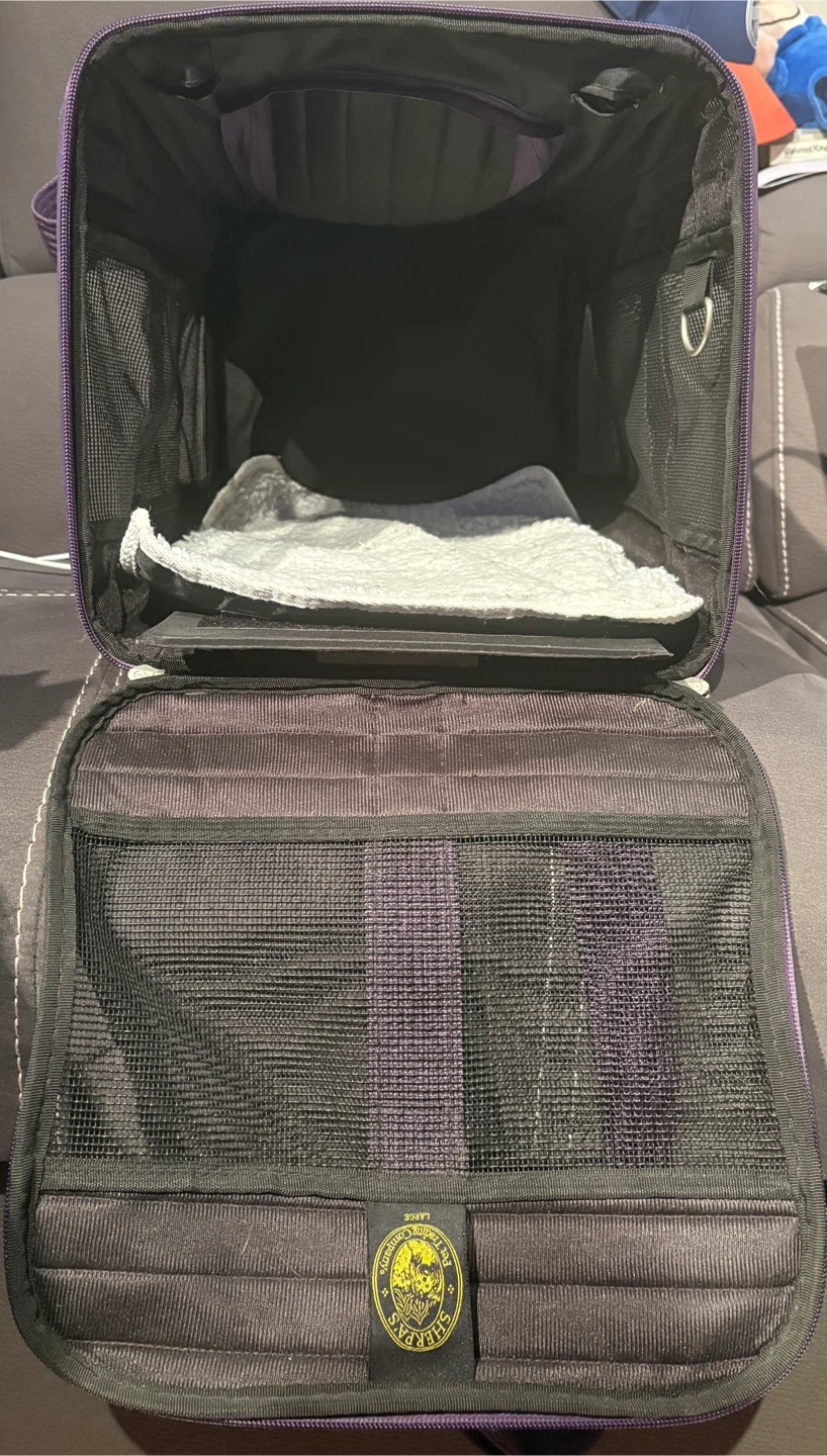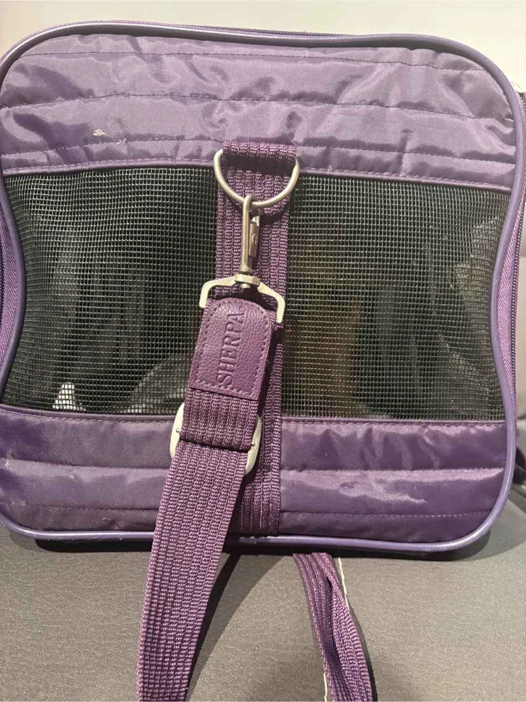 Selling a Sherpa pet carrier in purple! With both shoulder and hand carry straps. It's in great condition and perfect for taking your furry friend on trips. It features mesh windows for ventilation and a comfortable interior for your pet. The terry insert is washable.