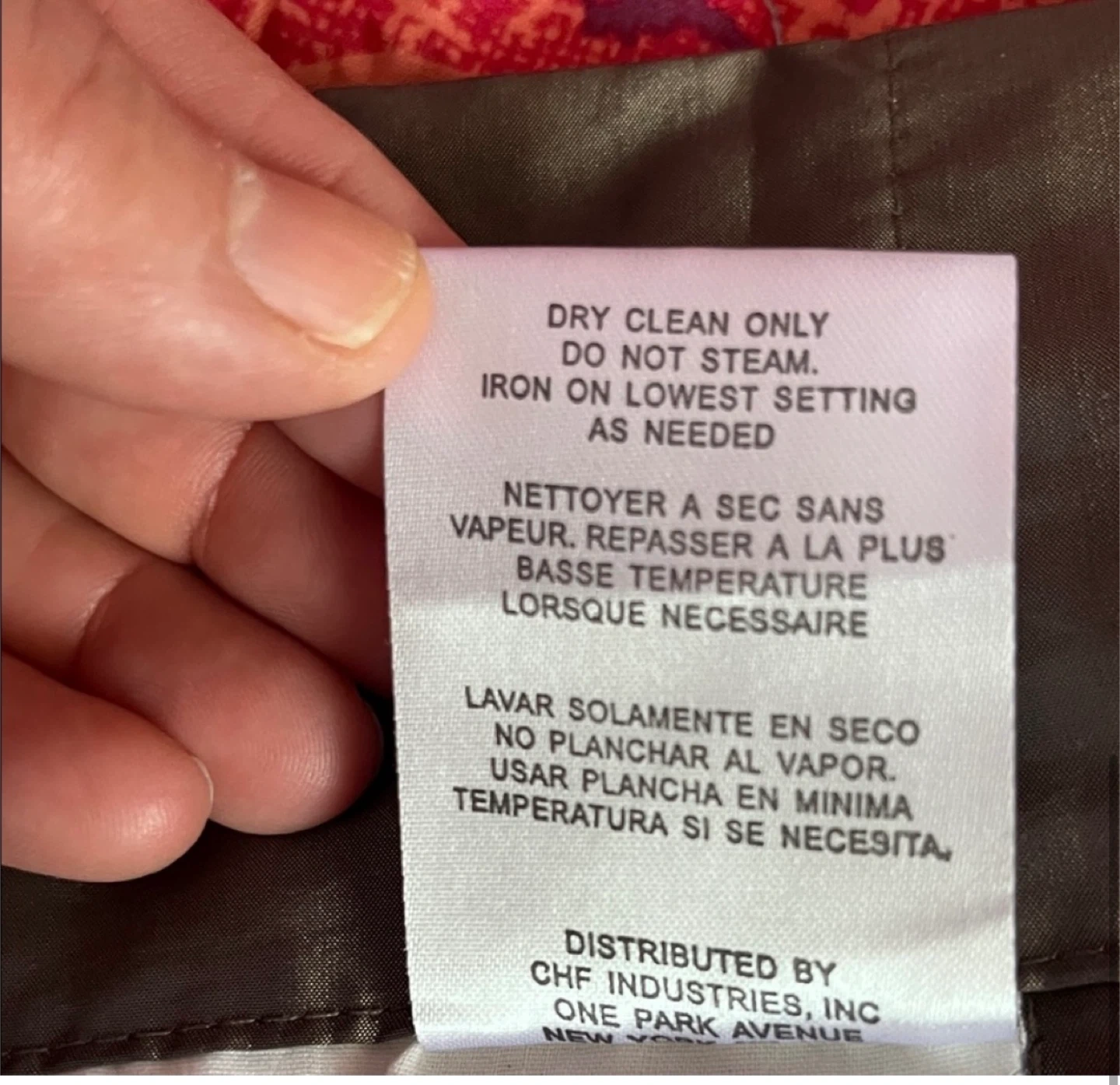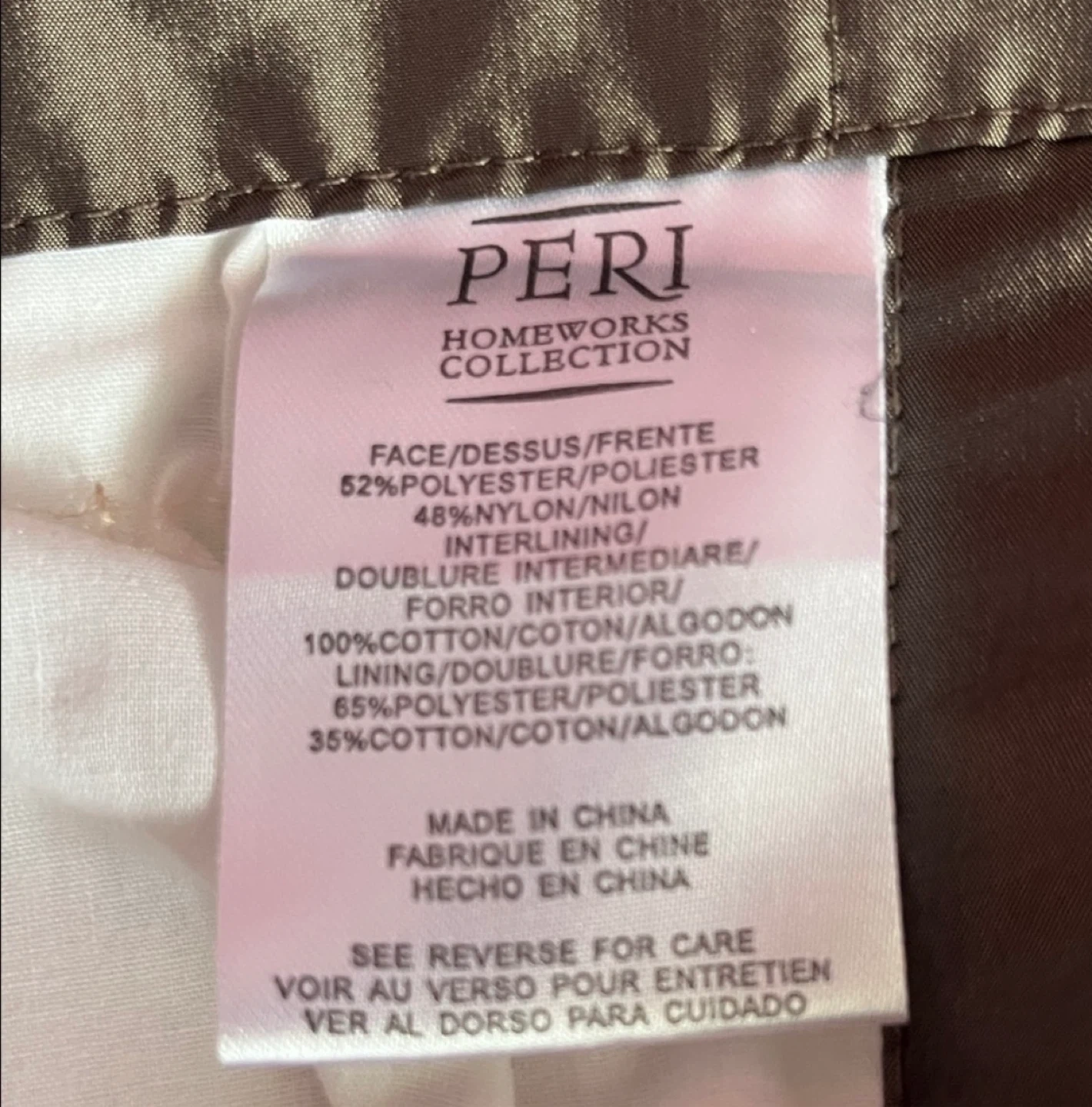 The material is 52% polyester and 48% nylon, with a 100% cotton lining