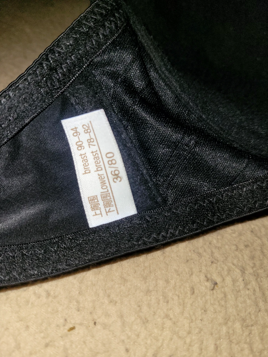 Selling a black bra with silver spikes, size 36/80. The label also indicates 'breast 90-94' and 'lower breast 78-82'. It's a unique piece to add to your collection!