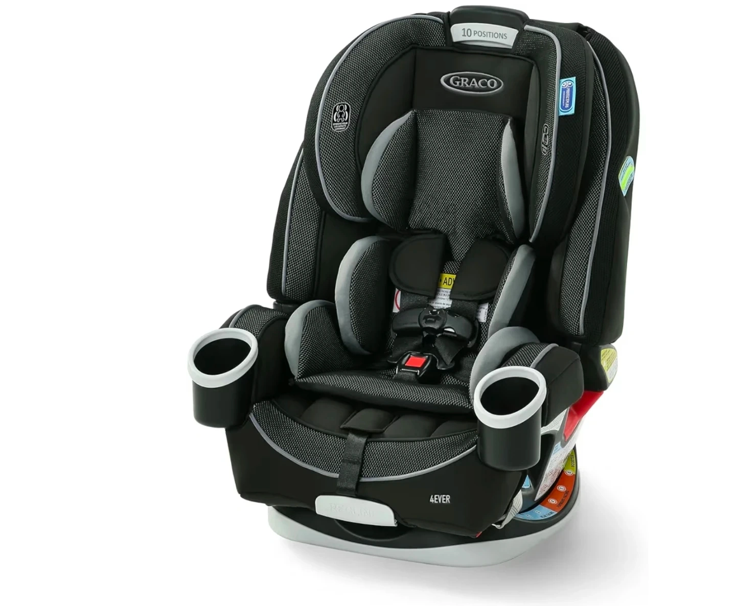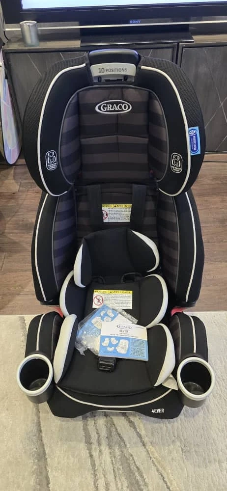 Selling a Graco 4Ever All-in-One car seat! It's in great shape and ready for a new family. This car seat grows with your child, from infant to booster seat, making it a long-lasting and convenient choice. It features a 10-position headrest and a 4-position recline to keep your little one comfy and safe on every journey. Plus, it has two handy cup holders for drinks and snacks