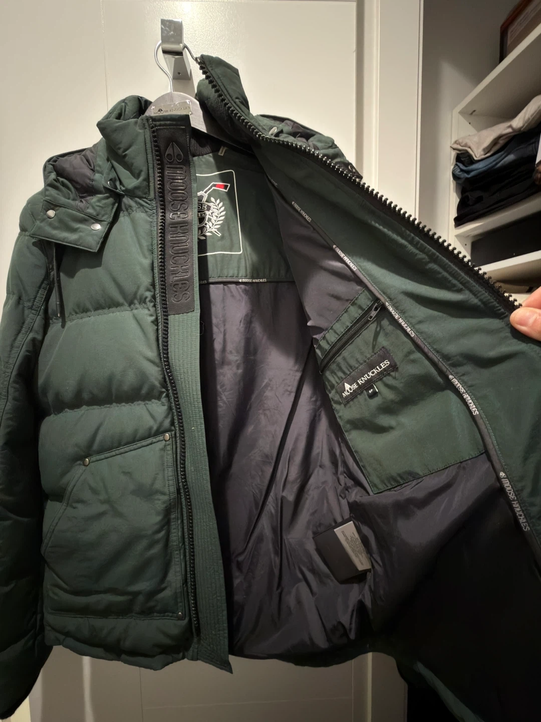 Here's a Moose Knuckles Deep Hole puffer jacket in size small. It's a stylish and warm jacket, perfect for the Canadian winter! The original price was $865 CAD. Paid $1000 incl taxes