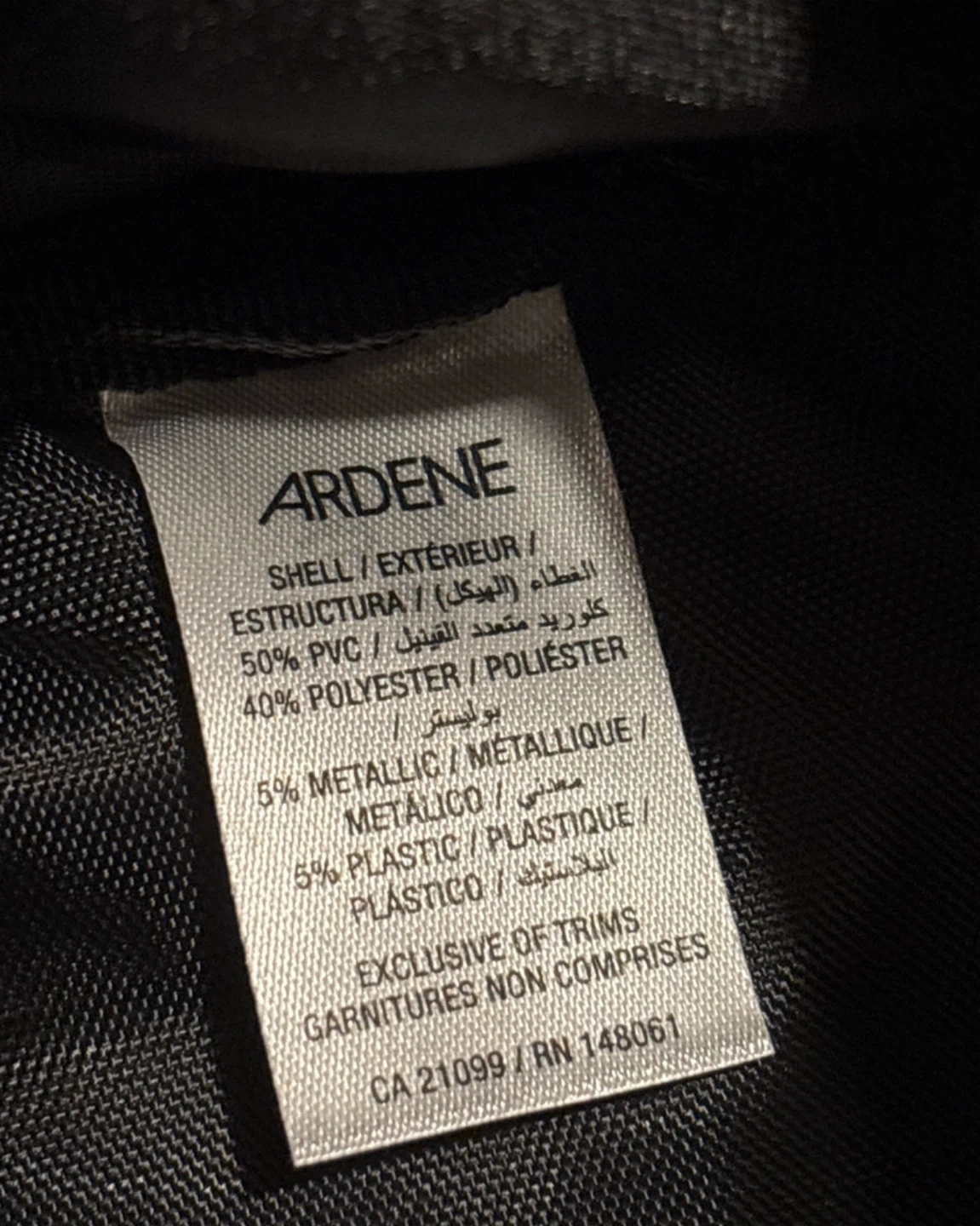 50% PVC, 40% polyester, 5% metal, 5% plastic