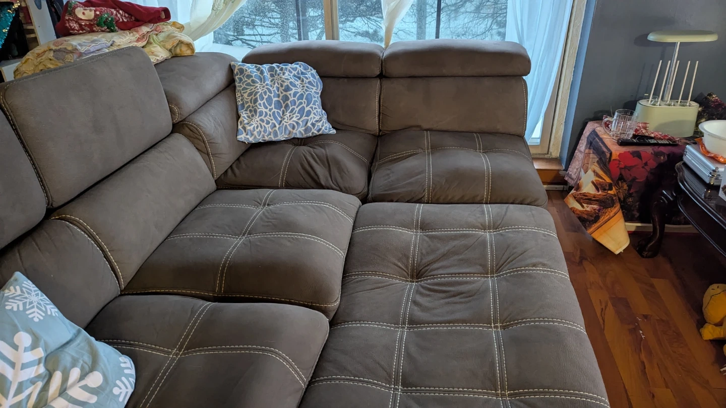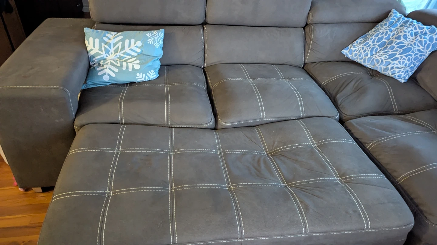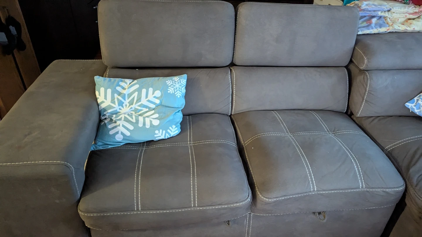 Selling a comfy grey sectional sofa! It features a convenient pull-out bed, perfect for guests or cozy movie nights. It's in good condition and ready for a new home!