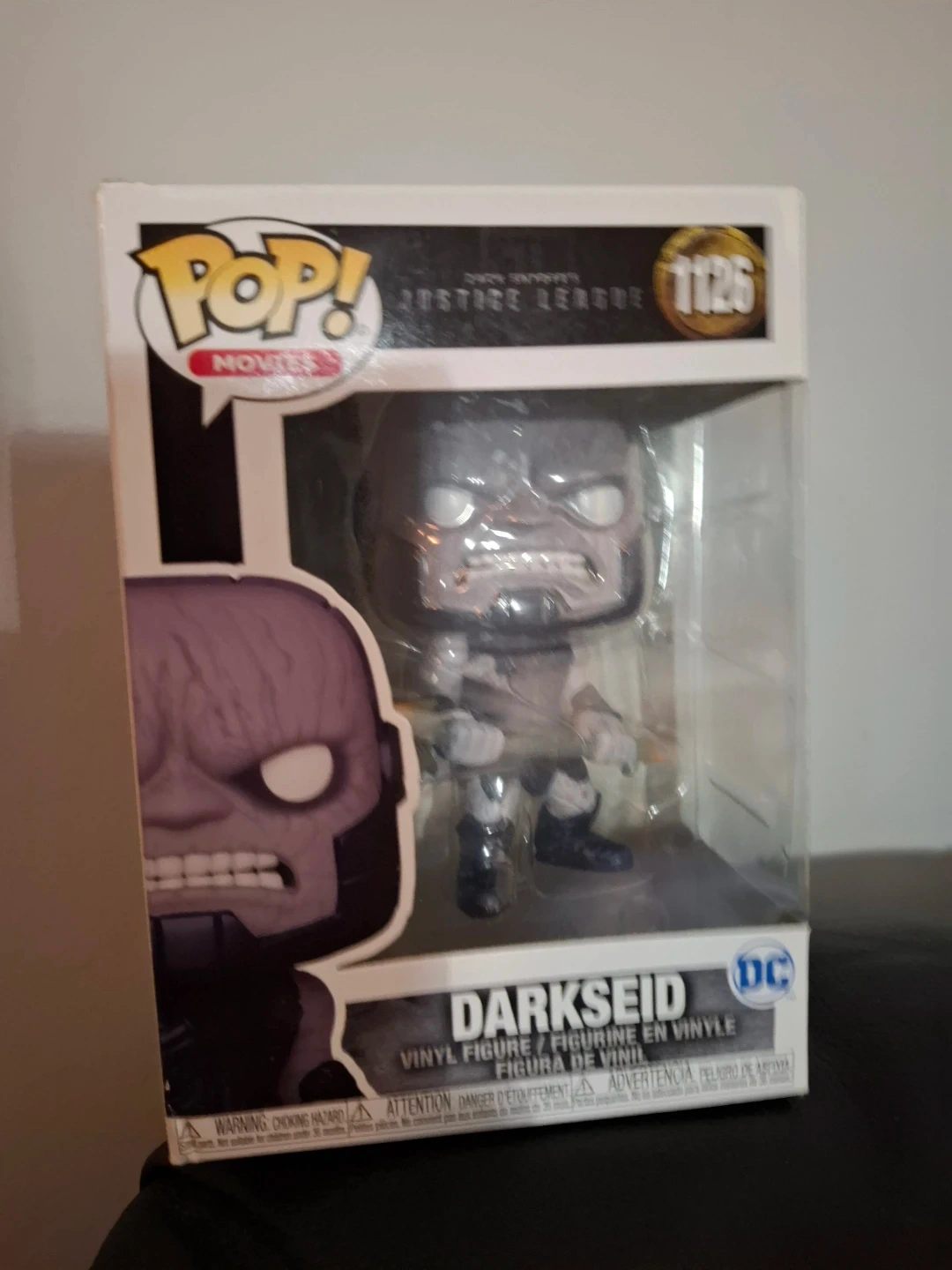Selling a Funko Pop! Movies figure of Darkseid, number 1126. It's a vinyl figure from the Justice League series and comes in its original box!