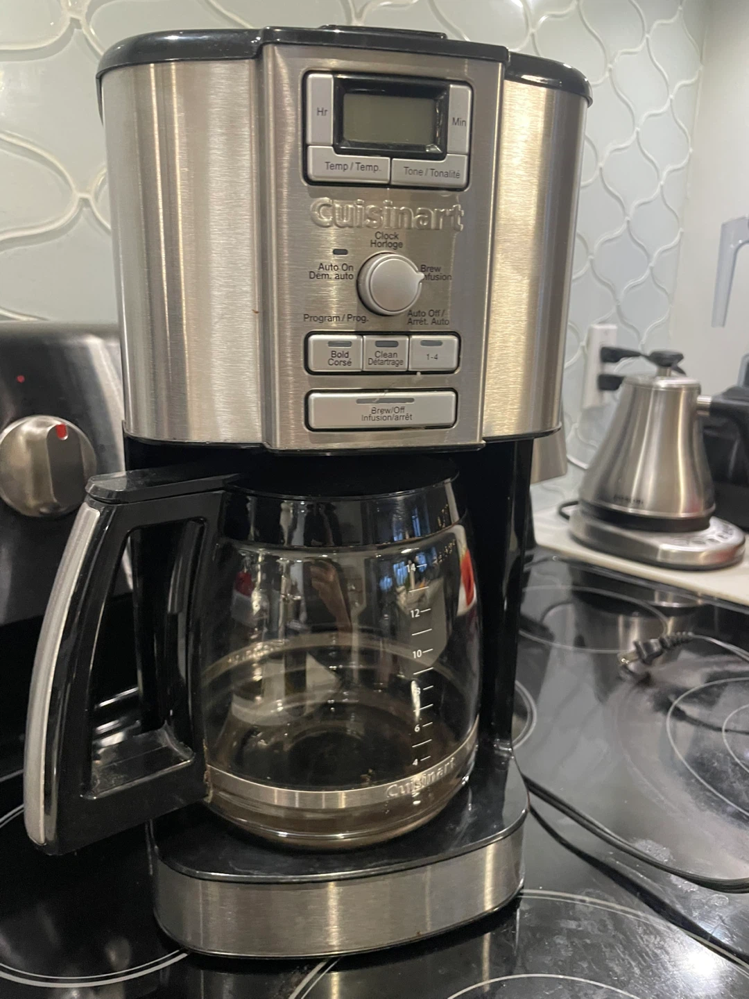 Selling a Cuisinart programmable coffee maker! It has auto on/off, brew fusion, and bold settings. The carafe is also Cuisinart branded. Great for your morning coffee! New one sells for $160.