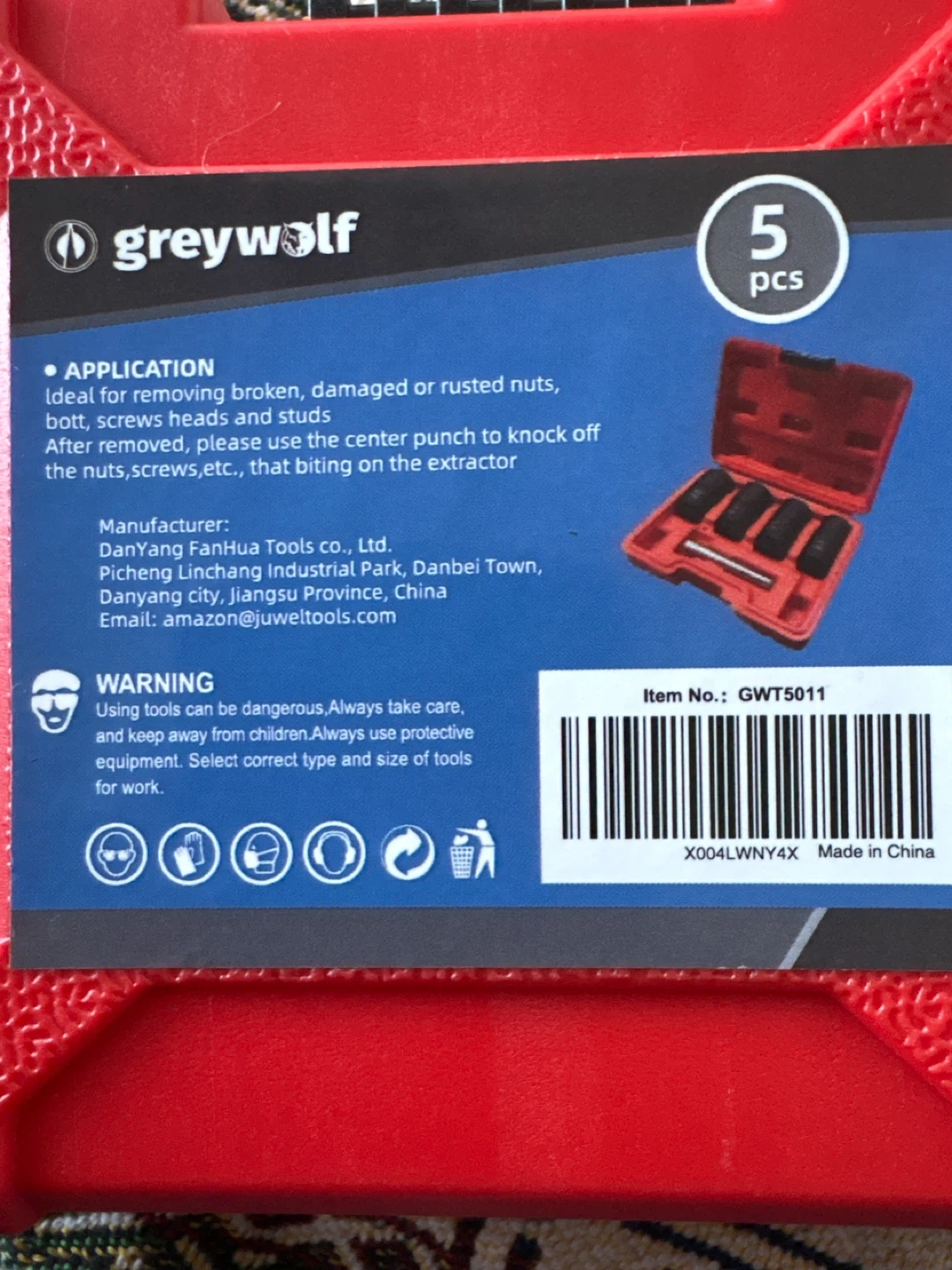 Selling a Greywolf nut removal tool set. It's ideal for removing broken, damaged, or rusted nuts, bolts, screw heads, and studs. After removing, please use the center punch to knock off the nuts, screws, etc, that are biting on the extractor. Comes in a red case with 5 pieces.