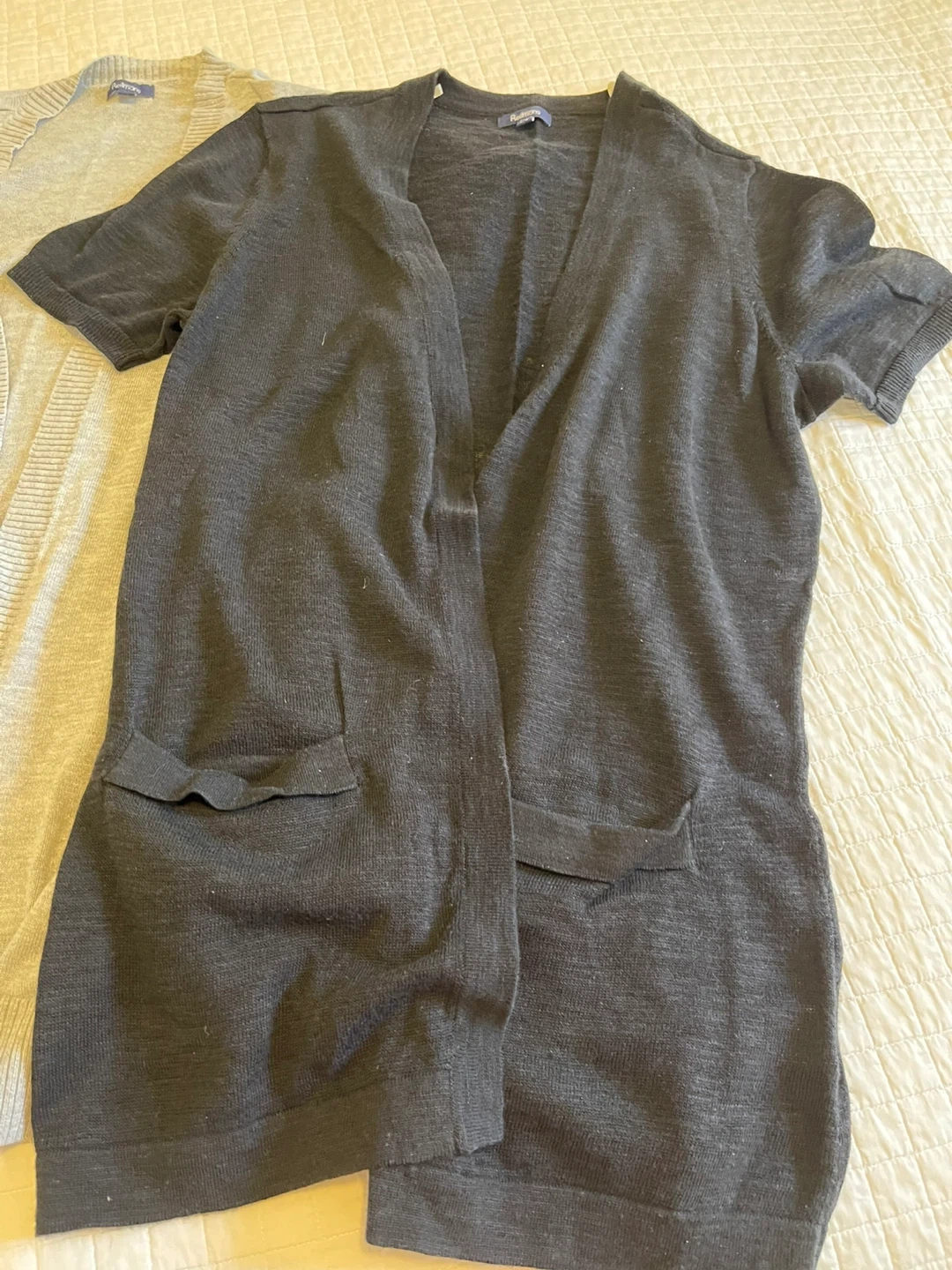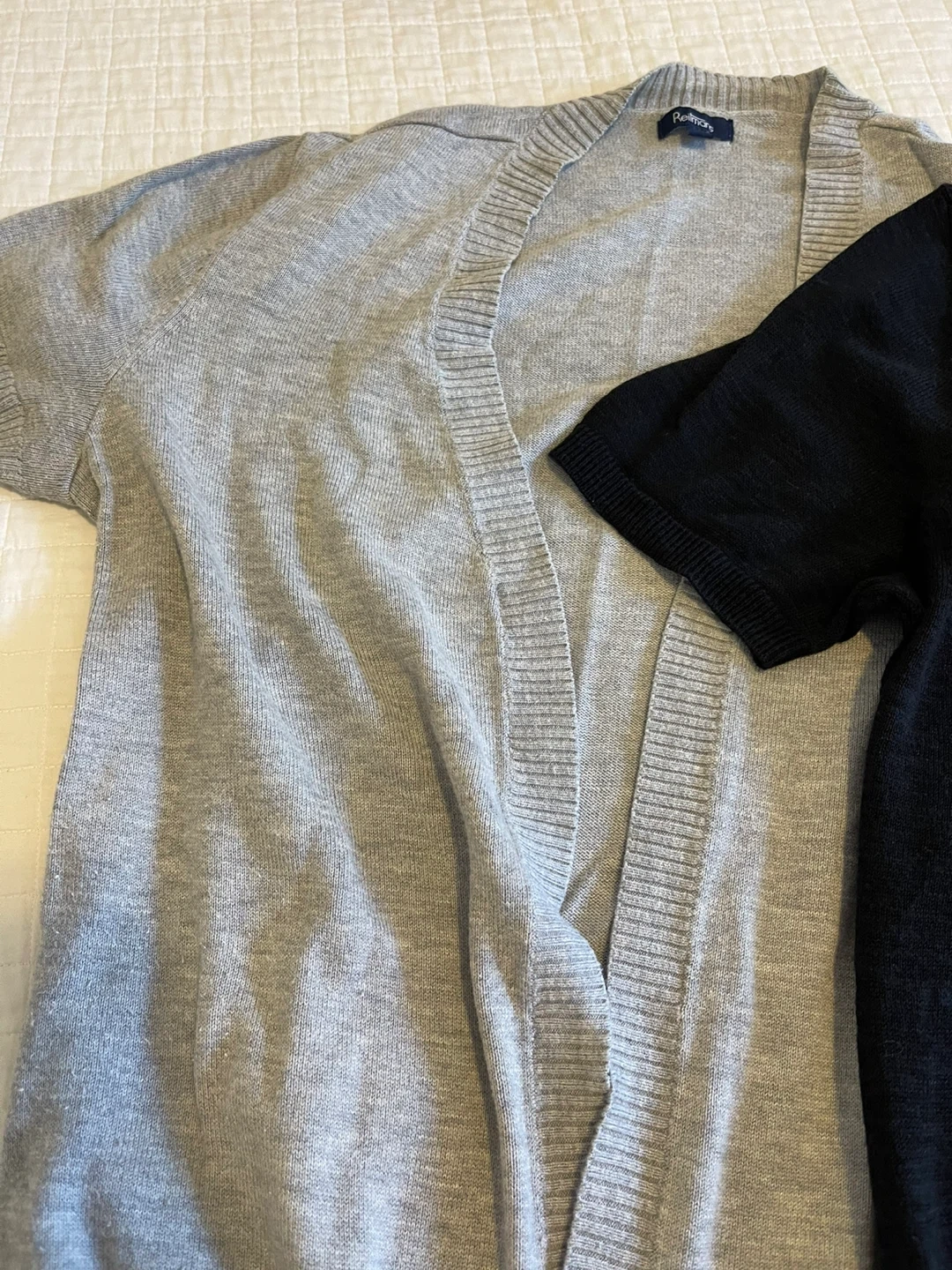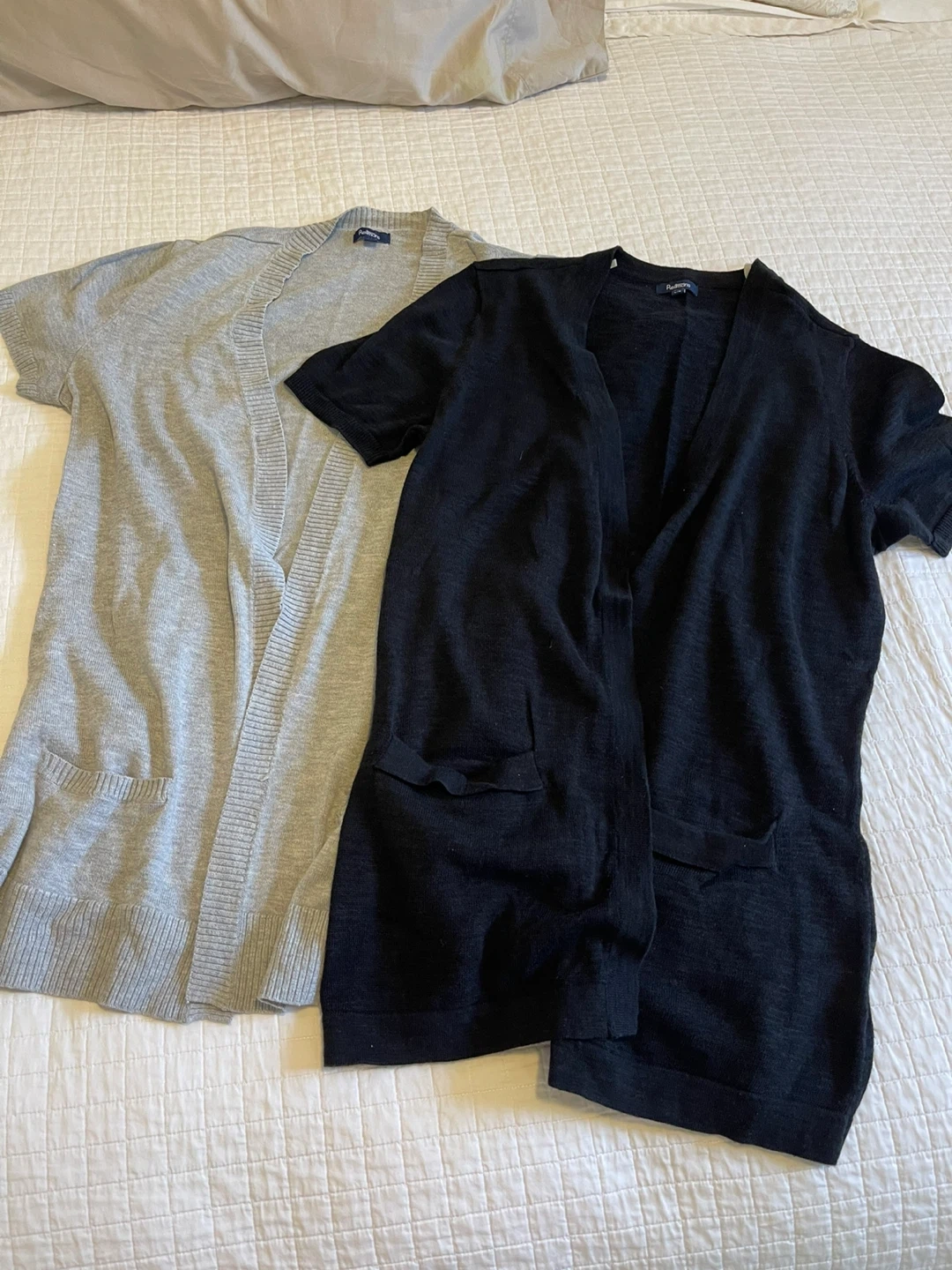 Selling two Reitmans cardigans! One is a lovely grey, and the other is a classic black. Both are in good condition and ready to add a touch of style to your wardrobe.