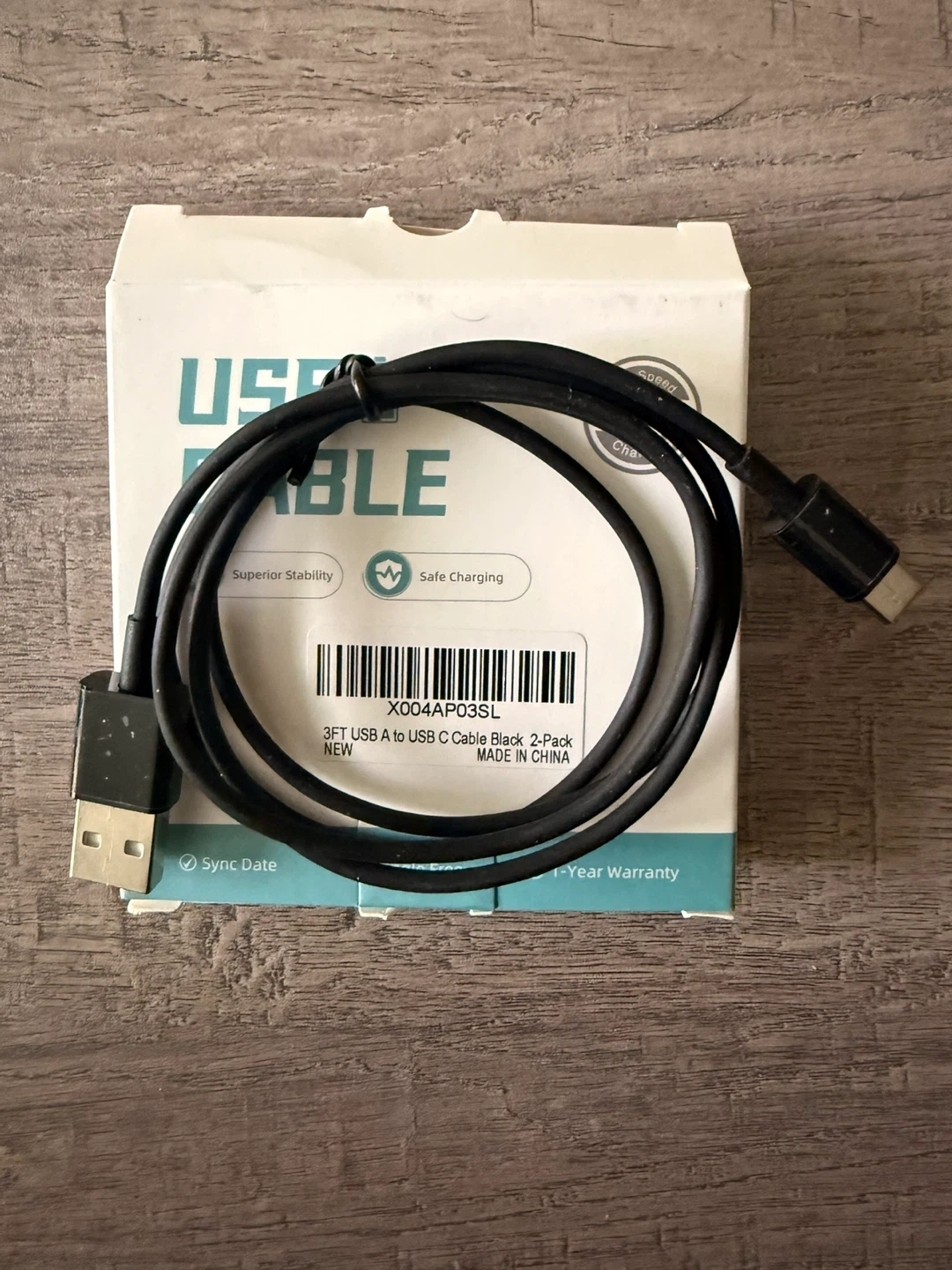 - still in its original packaging and has never been used. - This cable supports high-speed 3A charging and is tangle-free.
