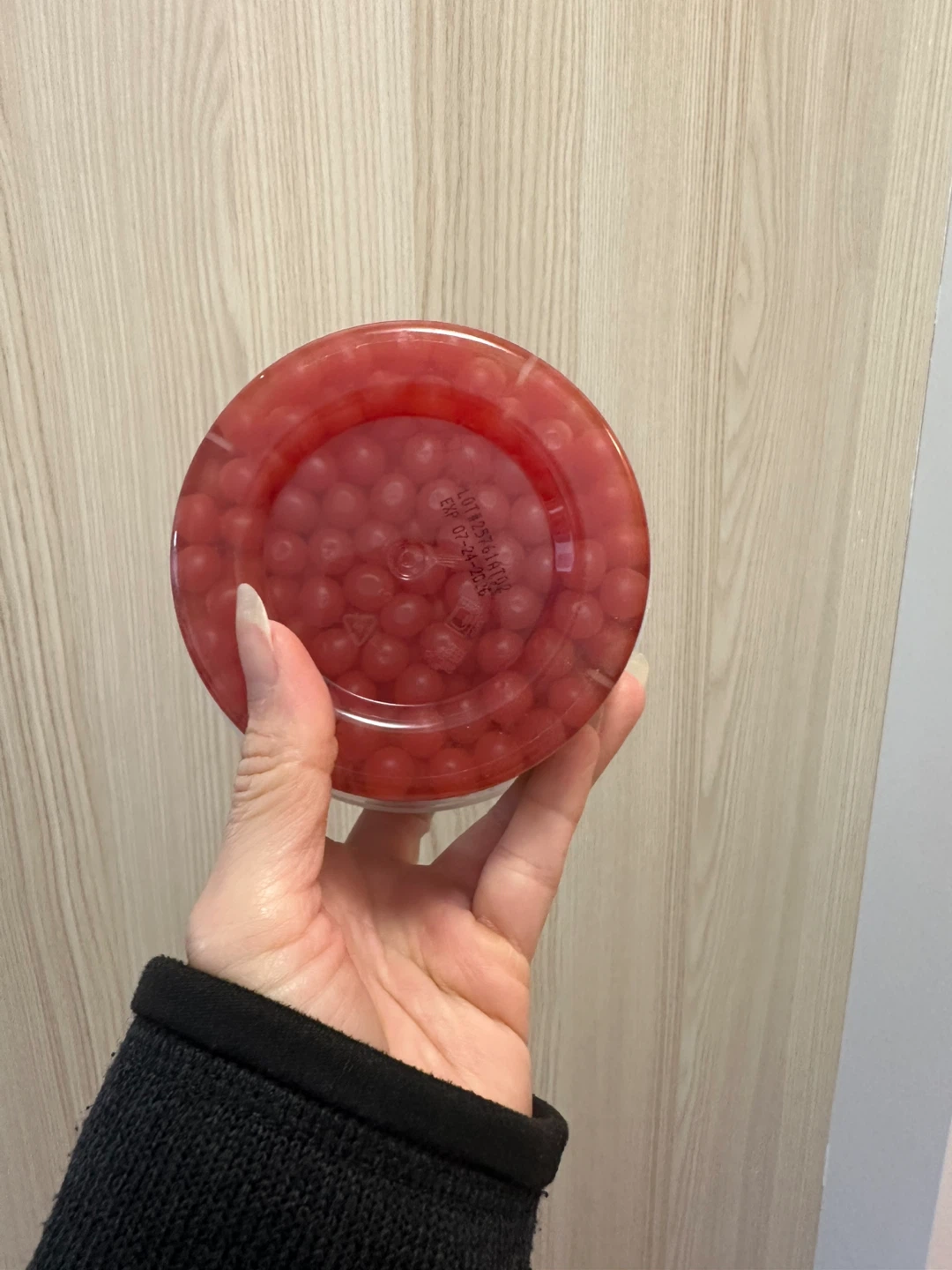 Selling a container of Boba Tea Protein Popping Pearls in strawberry flavour! These are naturally flavoured, naturally coloured, and artificially sweetened. Perfect for adding a fun burst of flavour to your drinks or desserts. July 2026.