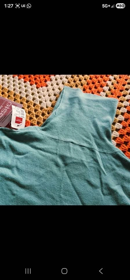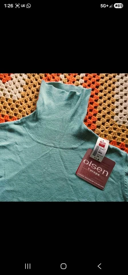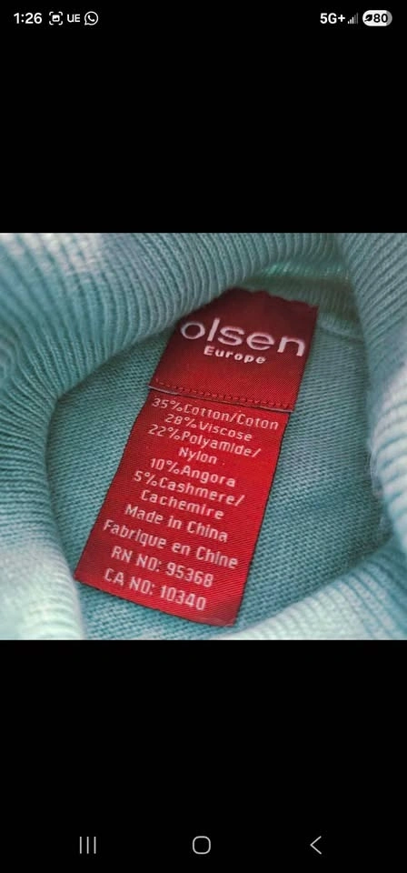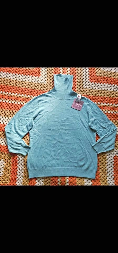 Stylish and ultra soft brand new with tags turtleneck sweater from reputable German brand Olsen. Sweater is a lovely shade of seafoam blue - light blue with hints of teal/ green. Made of a cozy and warm blend of angora, cashmere, viscose, cotton, and polyamide. Perfect for cold weather layering or wearing on its own.