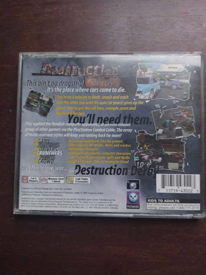 For sale is my copy of Destruction Derby. I got this a very long time ago, and I haven't really played it much nor do I plan on going back to it.