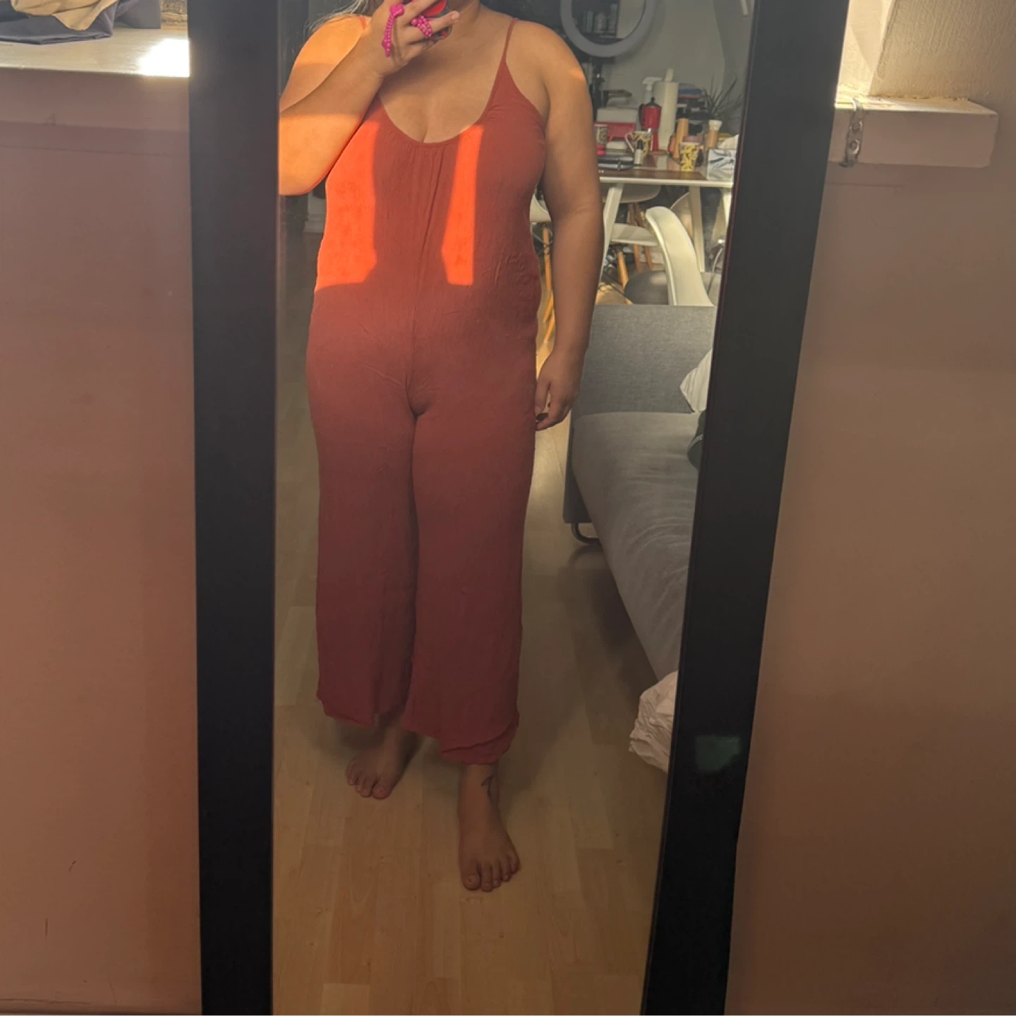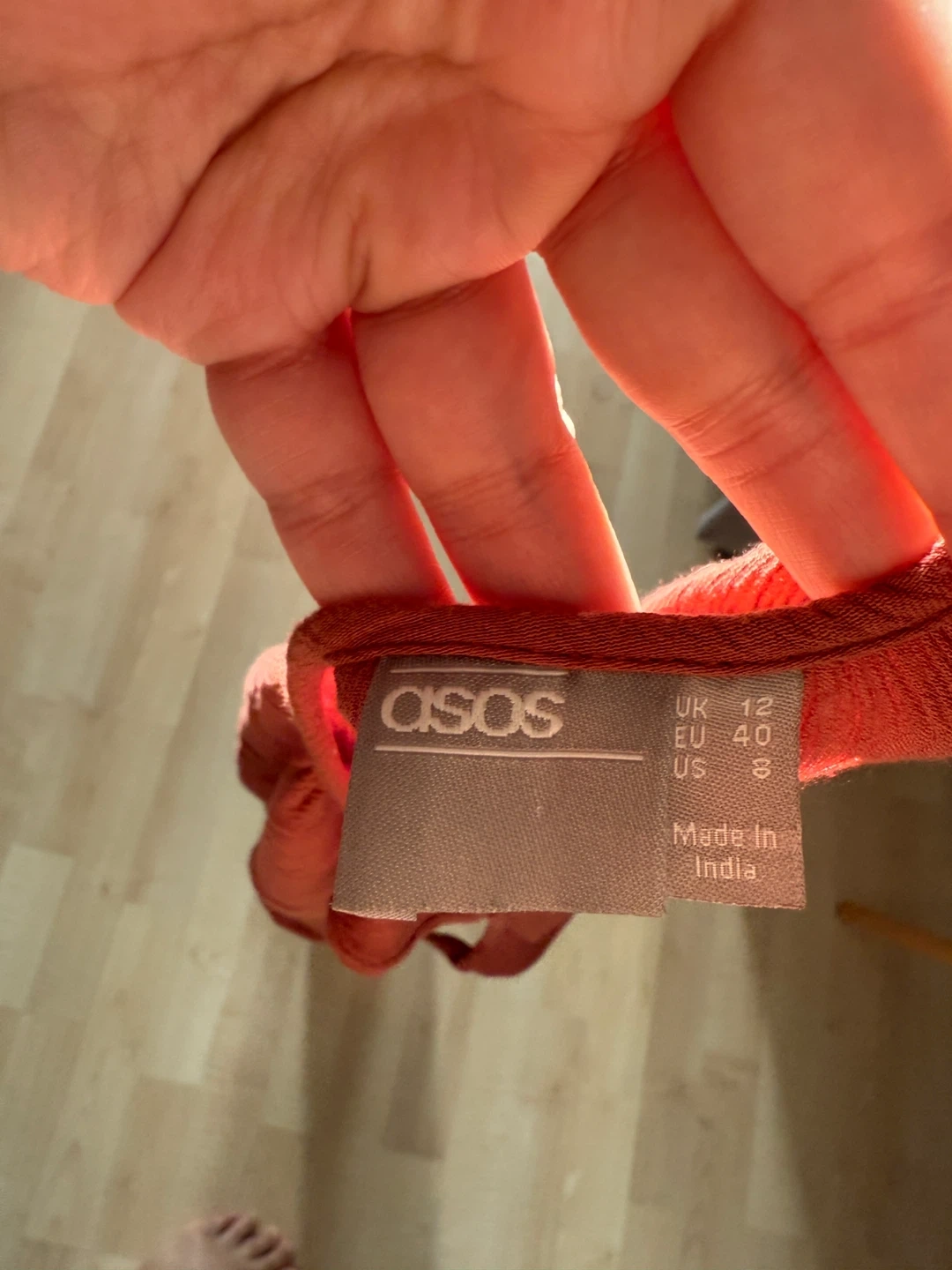 Selling a rust-coloured jumpsuit from ASOS. It's a size US 8 (UK 12, EU 40). Made in India. It's in great condition and ready for a new owner!