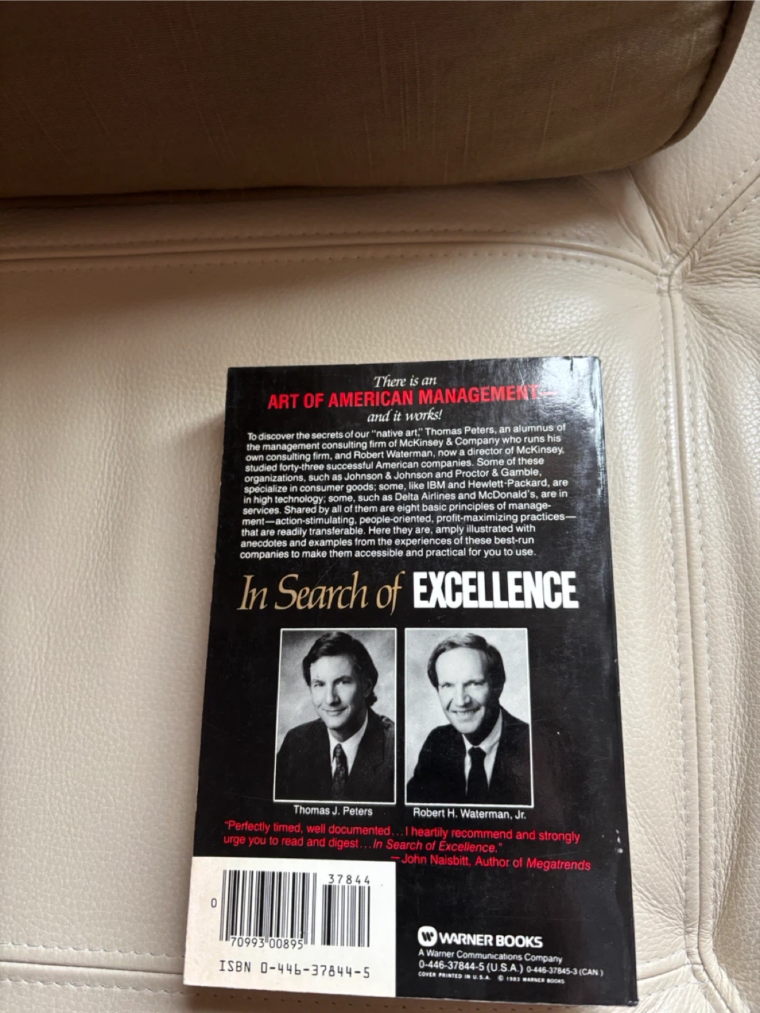 Selling a copy of "In Search of Excellence: Lessons from America's Best-Run Companies" by Thomas J. Peters and Robert H. Waterman, Jr. It's a nationwide bestseller from Warner Books.